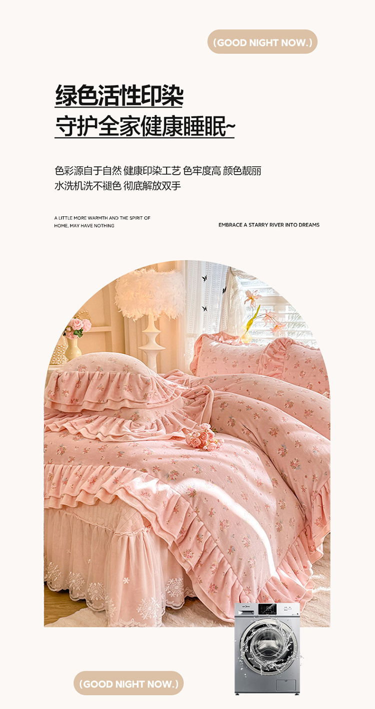 (总)苏米娜家纺2026春夏新款活性印花ins风小碎花软糯水洗棉床盖款四件套全棉纯棉花边款被套,春田绿 ,紫韵,兰黛 , 奶酪芝士 ,莫奈-粉