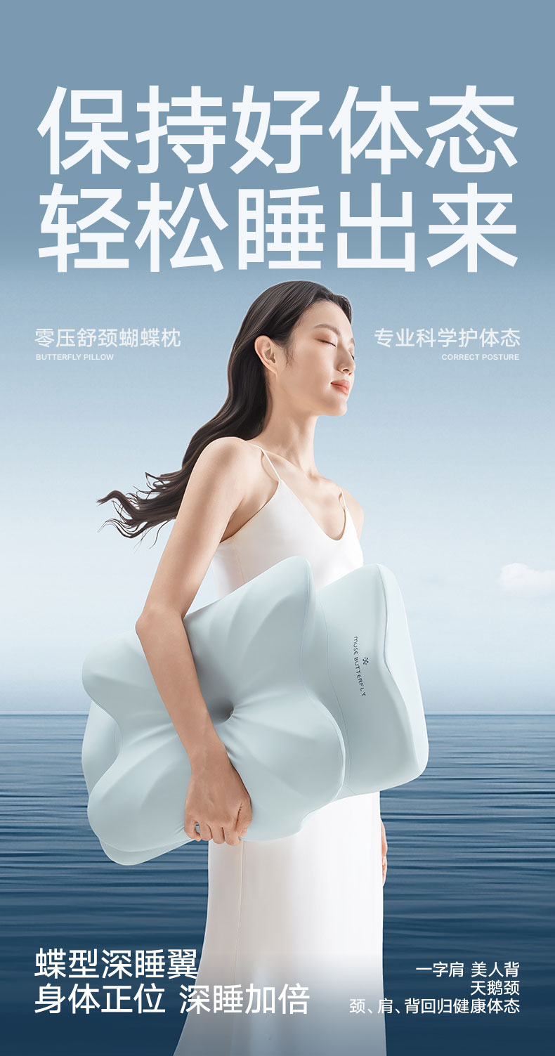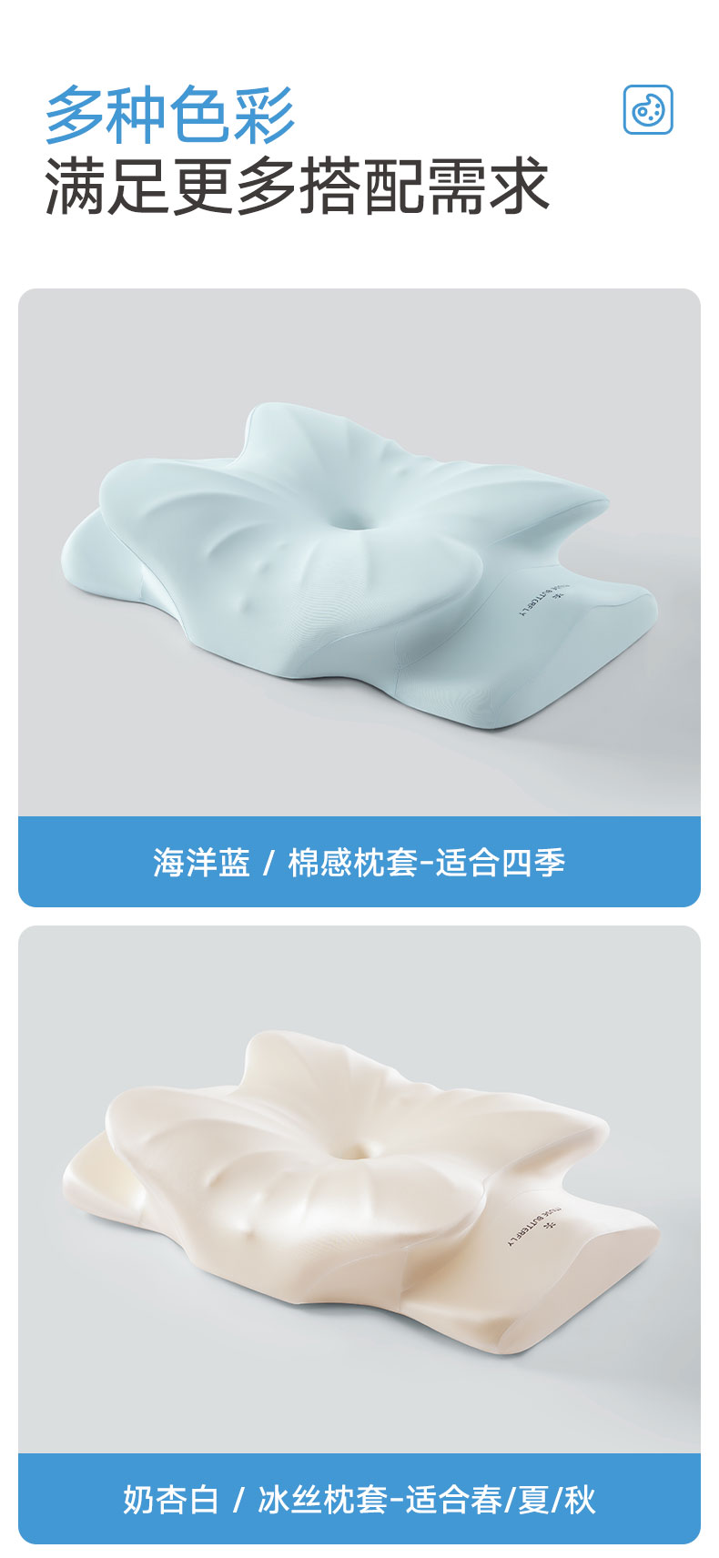 (总)可恩欣 2025新款零压舒颈蝴蝶枕枕头枕芯,海洋蓝,奶杏白,礼盒