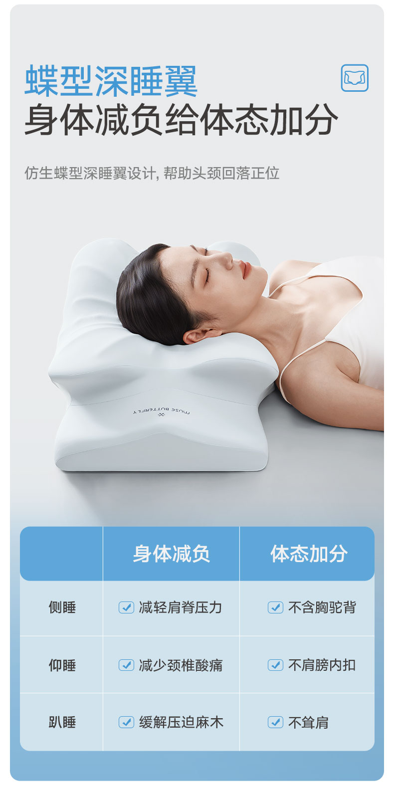 商品名称:可恩欣 2025新款零压舒颈蝴蝶枕枕头枕芯 海洋蓝
