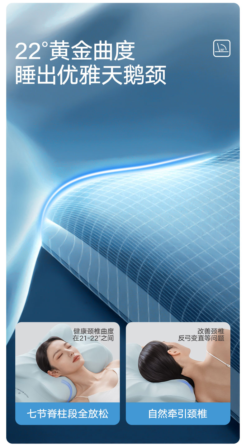 可恩欣 2025新款零压舒颈蝴蝶枕枕头枕芯 海洋蓝