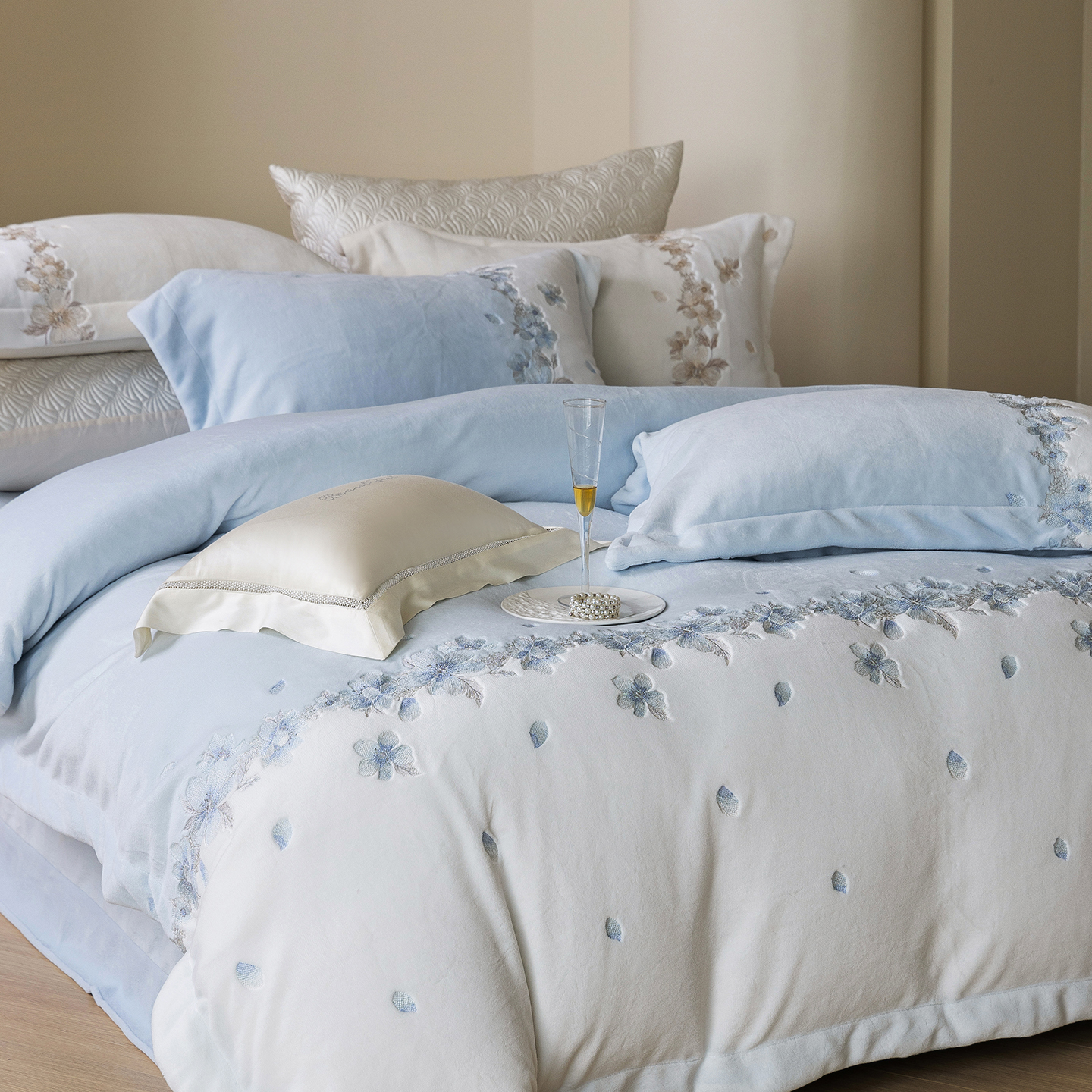 (总)佳汐蓝家纺 2026新款牛奶绒印花流光纱四件套-香奈(券后不低于328元),香奈