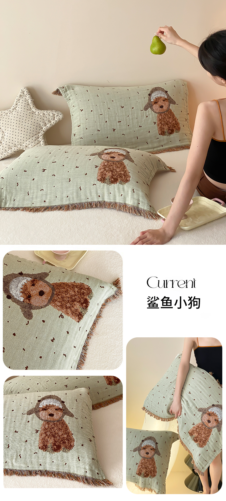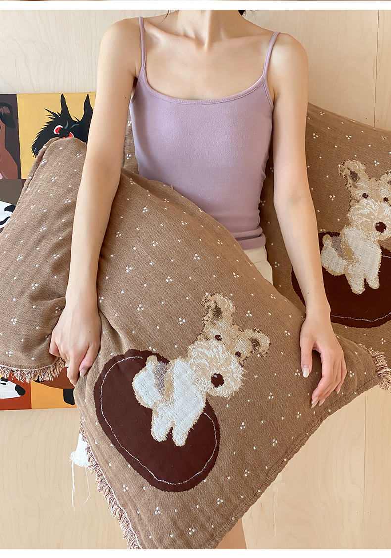 商品名称:麻依 2025新款全棉四层纱布软萌流苏枕巾 乖乖狗