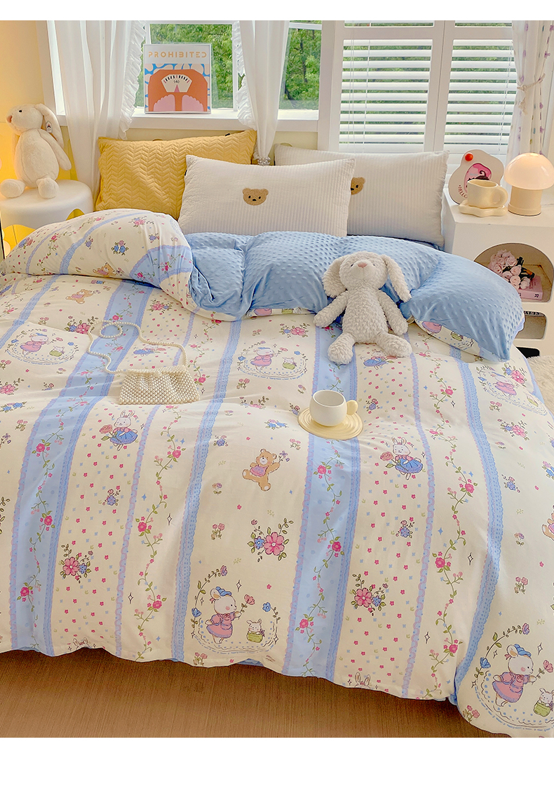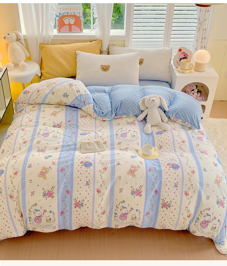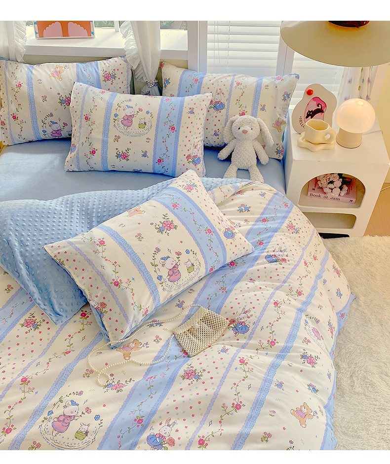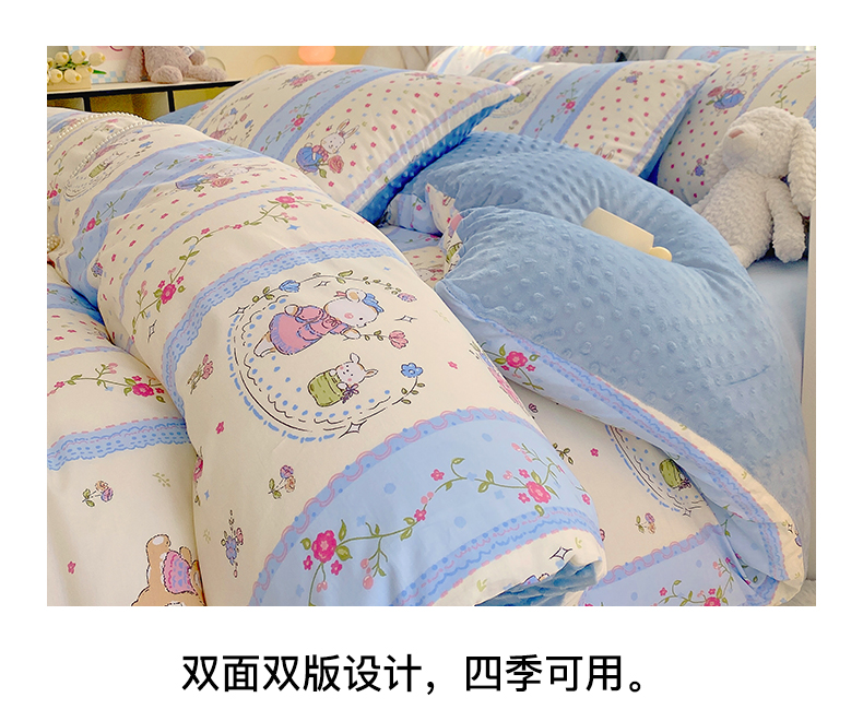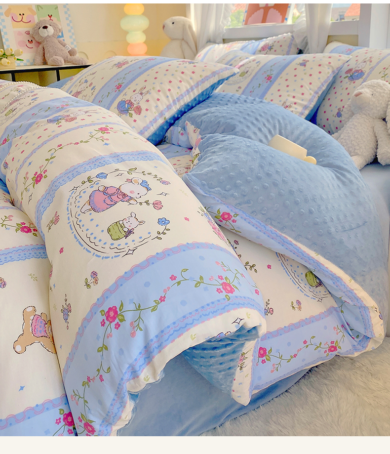 金鑫汇家纺 2025新款全棉豆豆绒系列单被套-棉加绒系列 棉加豆豆绒-快乐萌兔