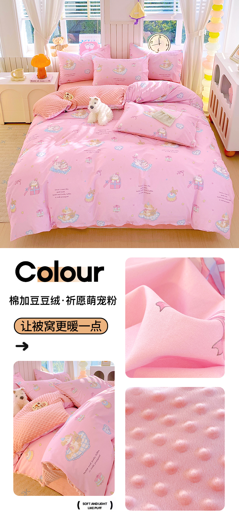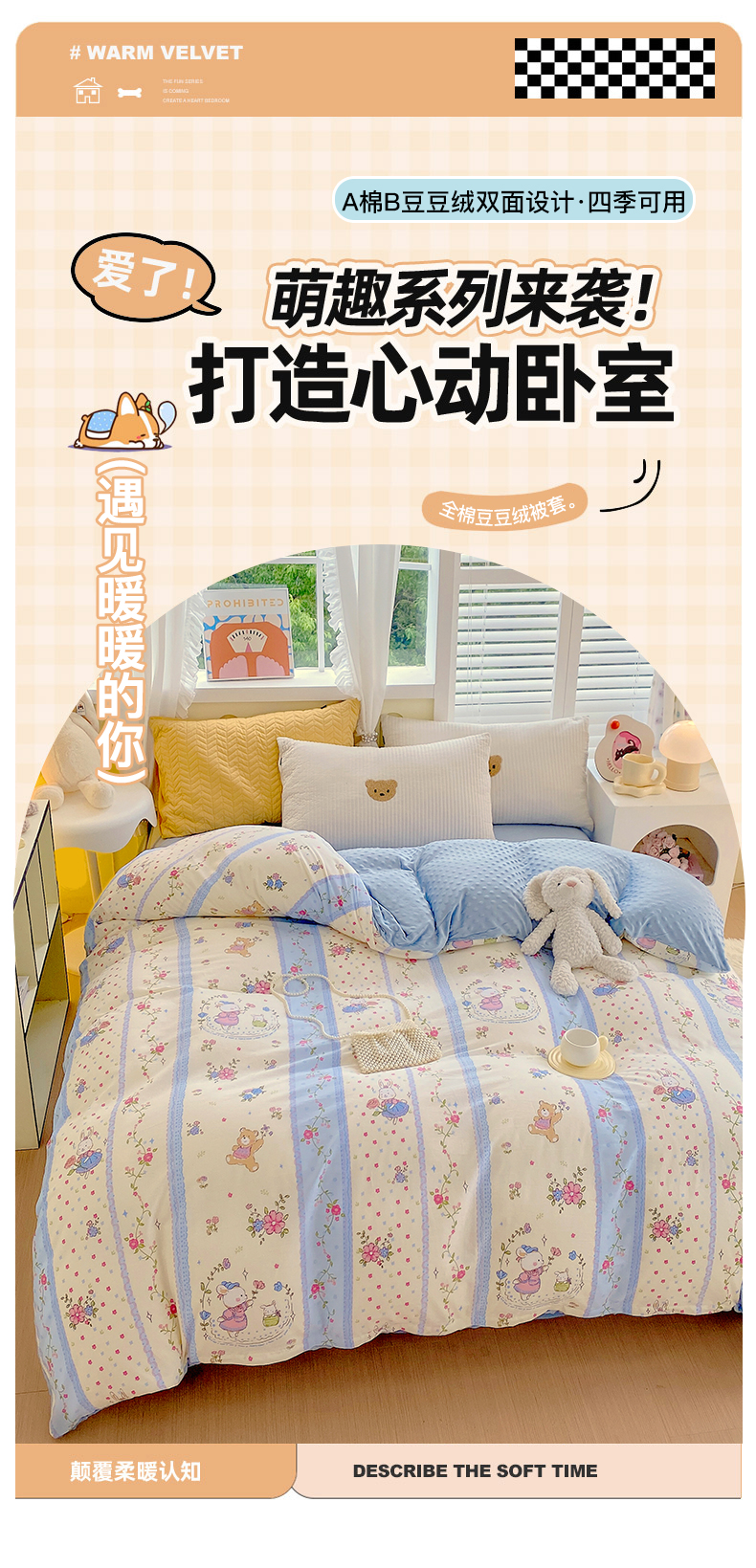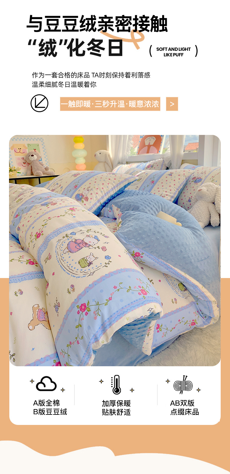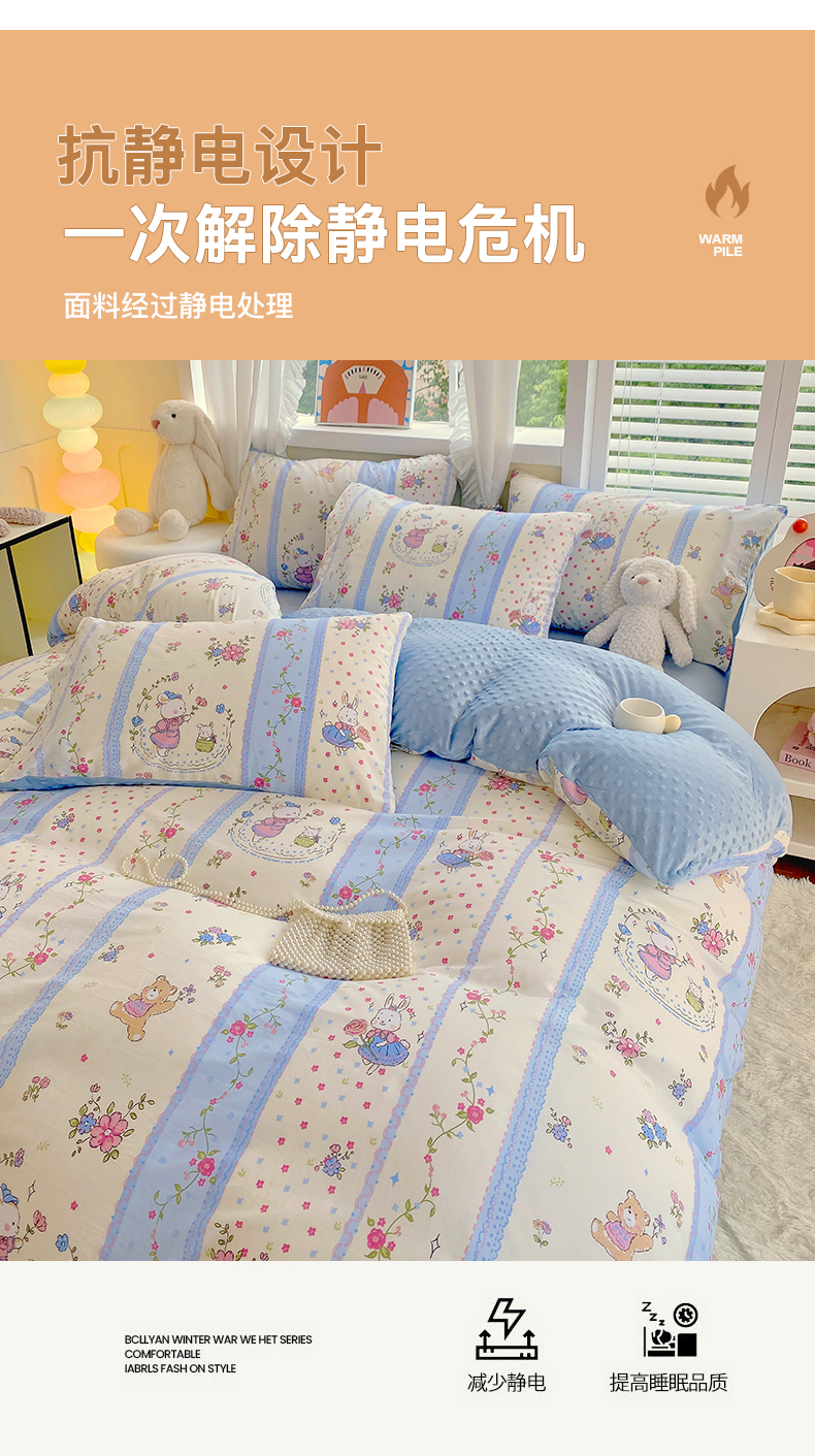 • 91家纺网 家纺一手货源 找家纺 金鑫汇家纺 2025新款全棉豆豆绒系列单被套-棉加绒系列 棉加豆豆绒-快乐萌兔