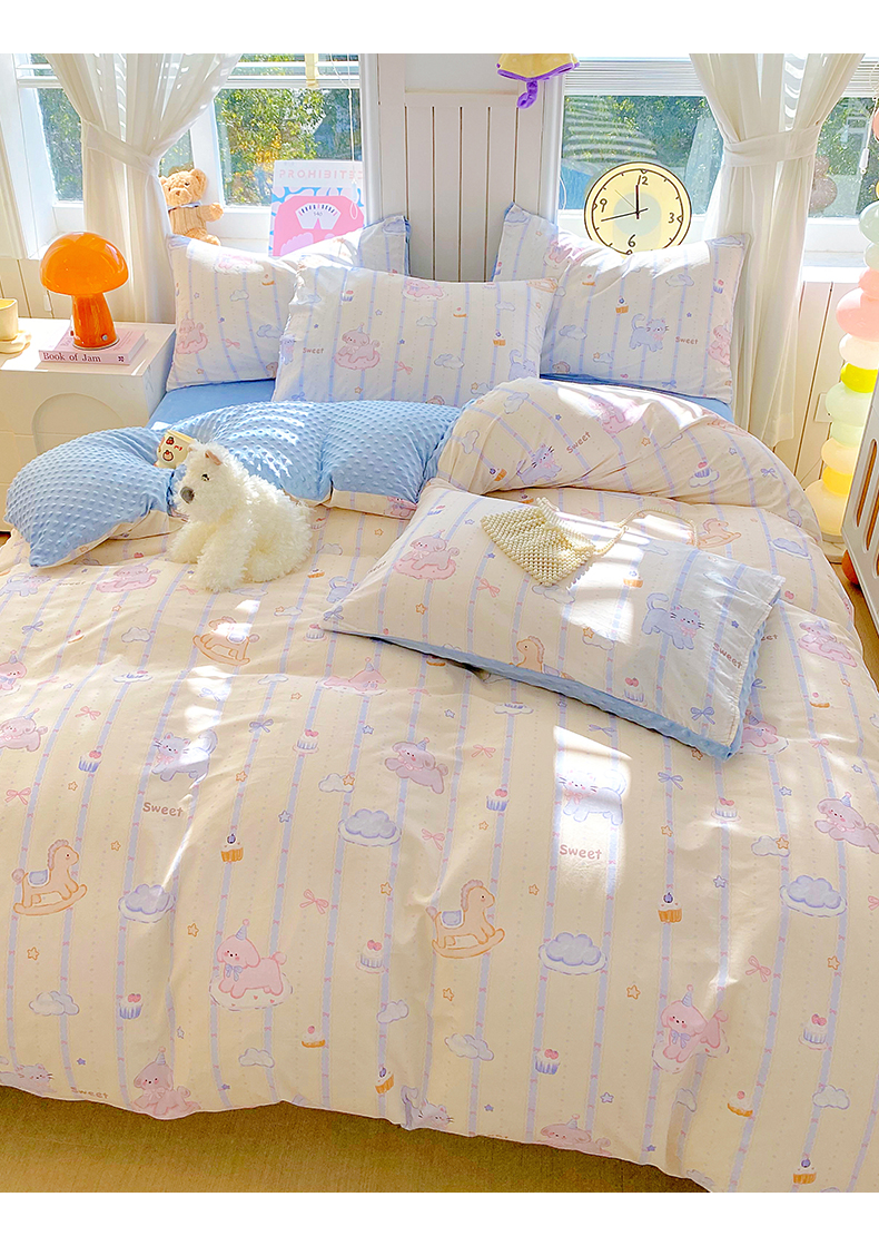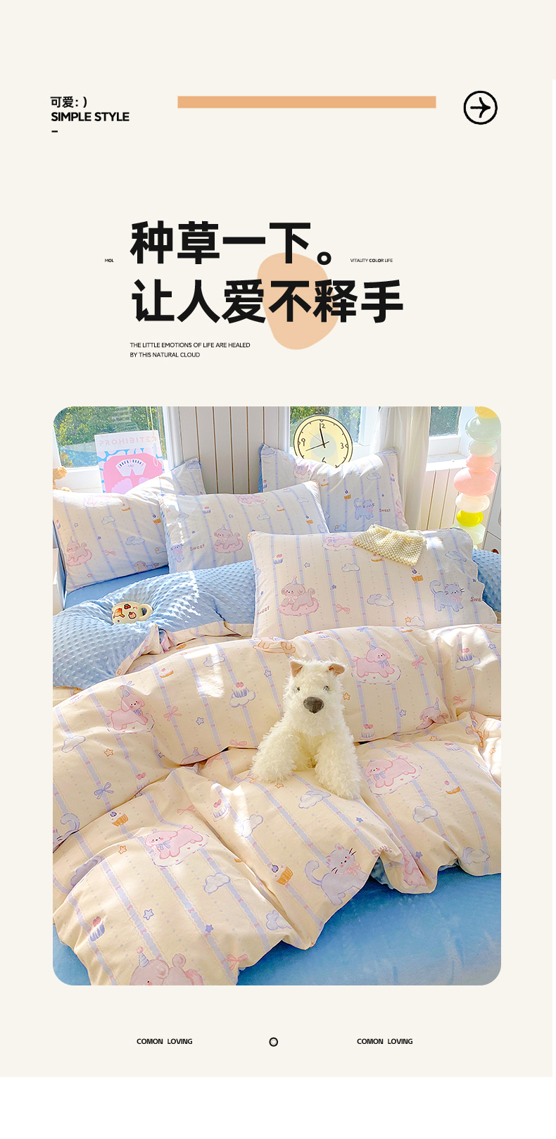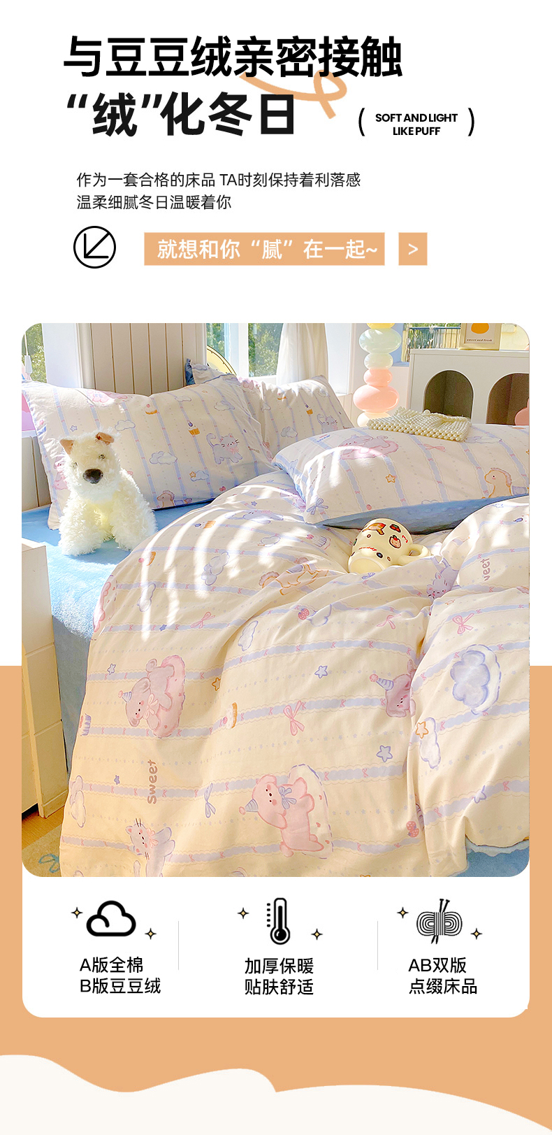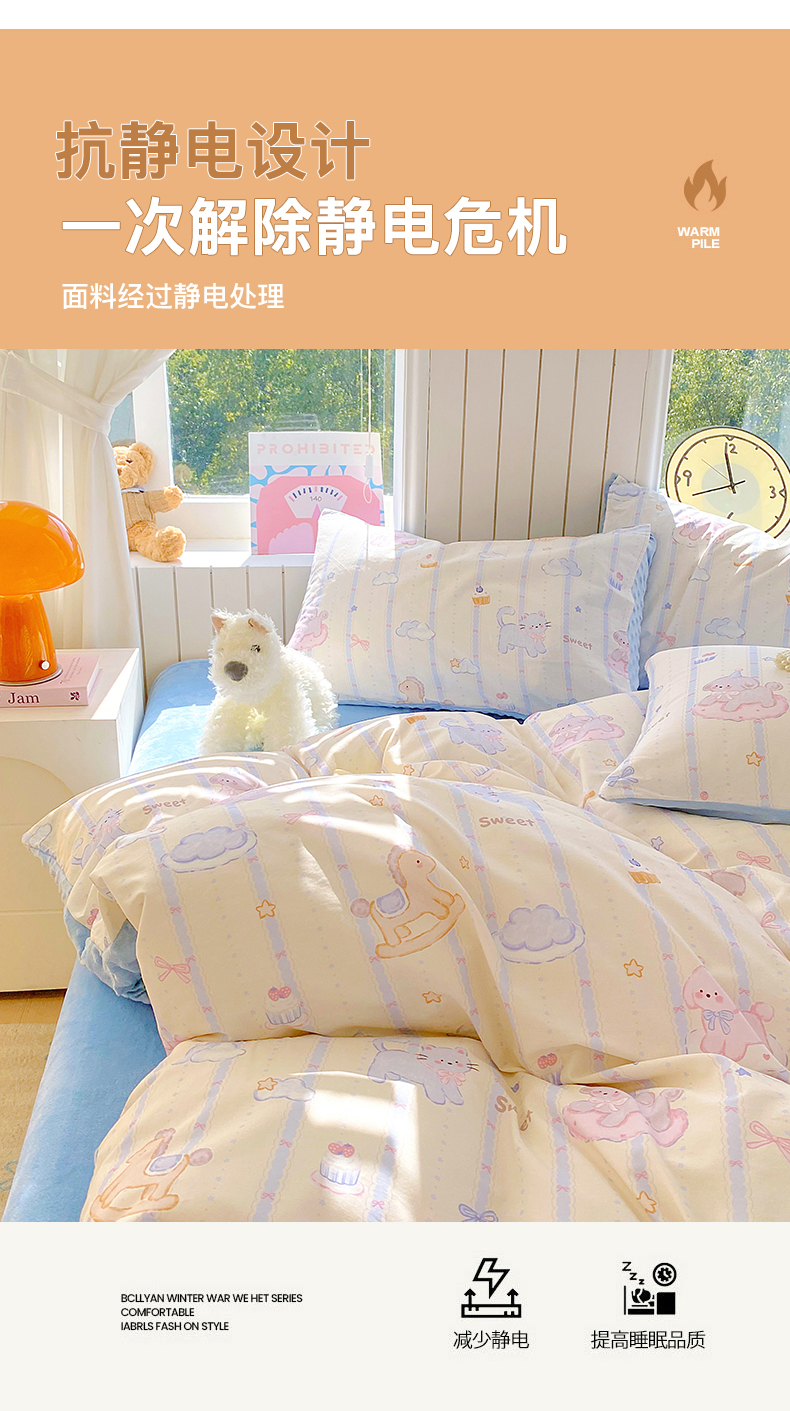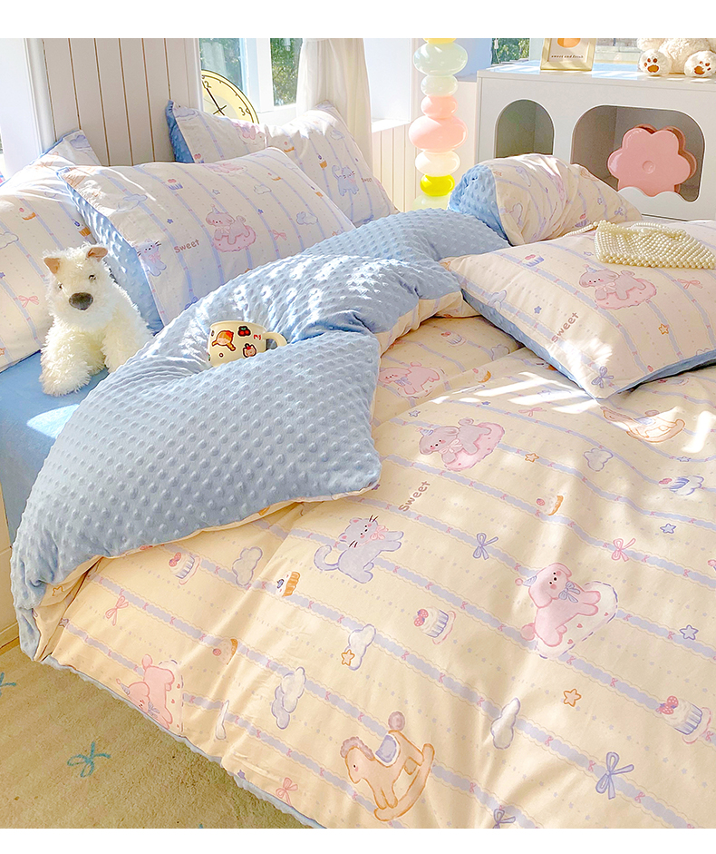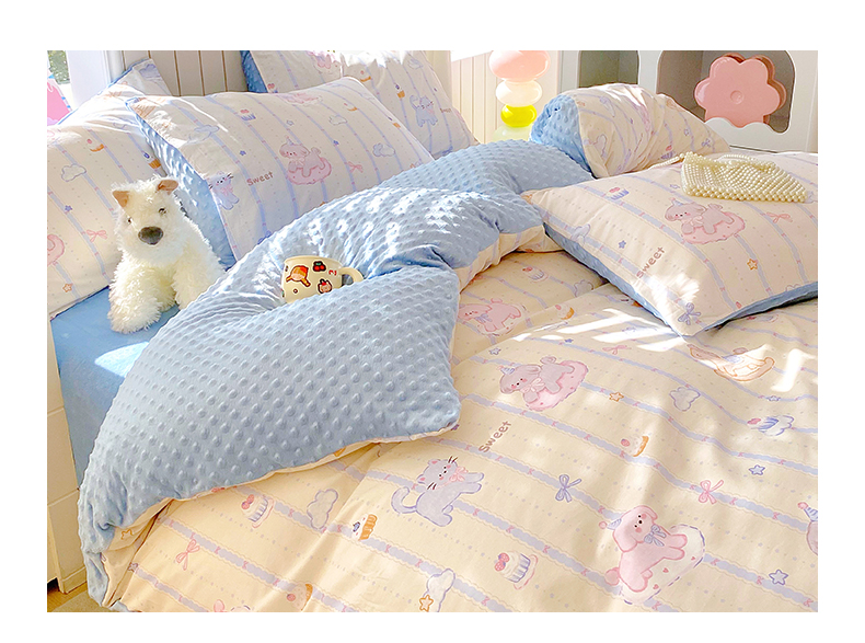 金鑫汇家纺 2025新款全棉豆豆绒系列单被套-棉加绒系列 棉加豆豆绒-甜梦园-蓝