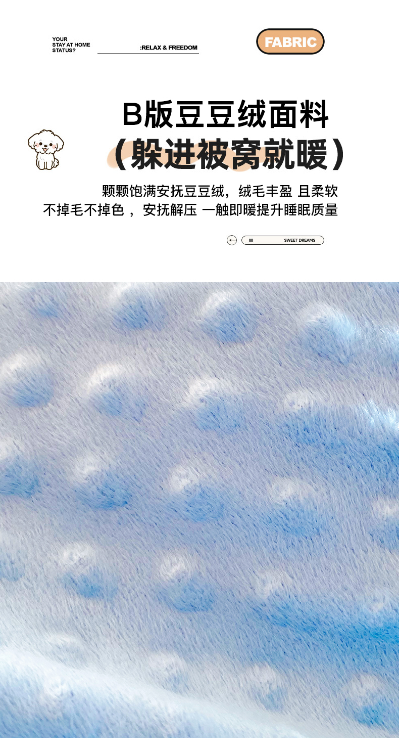 • 91家纺网 家纺一手货源 找家纺 金鑫汇家纺 2025新款全棉豆豆绒系列单被套-棉加绒系列 棉加豆豆绒-甜梦园-蓝