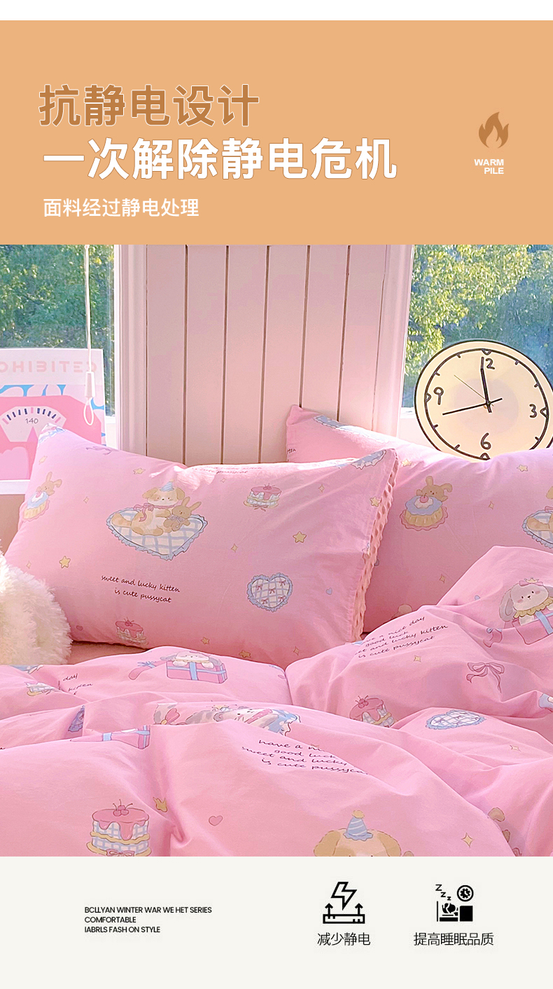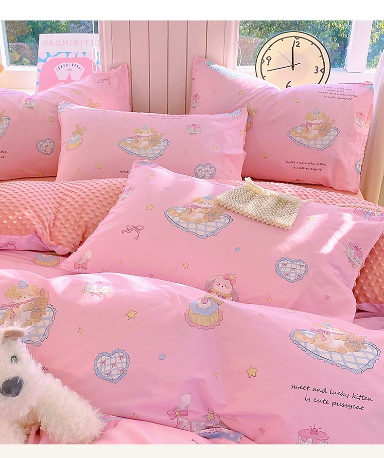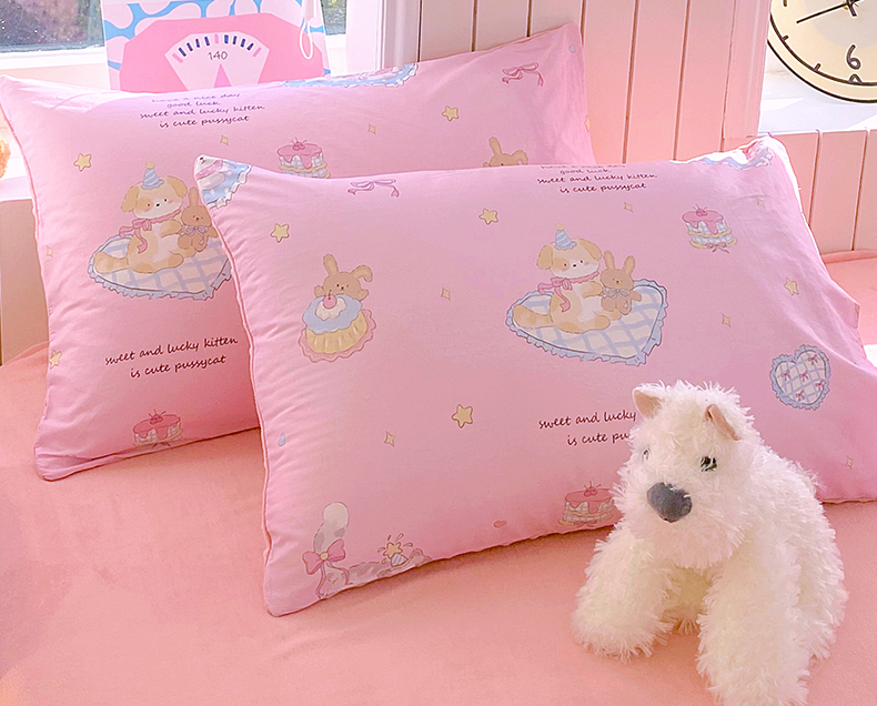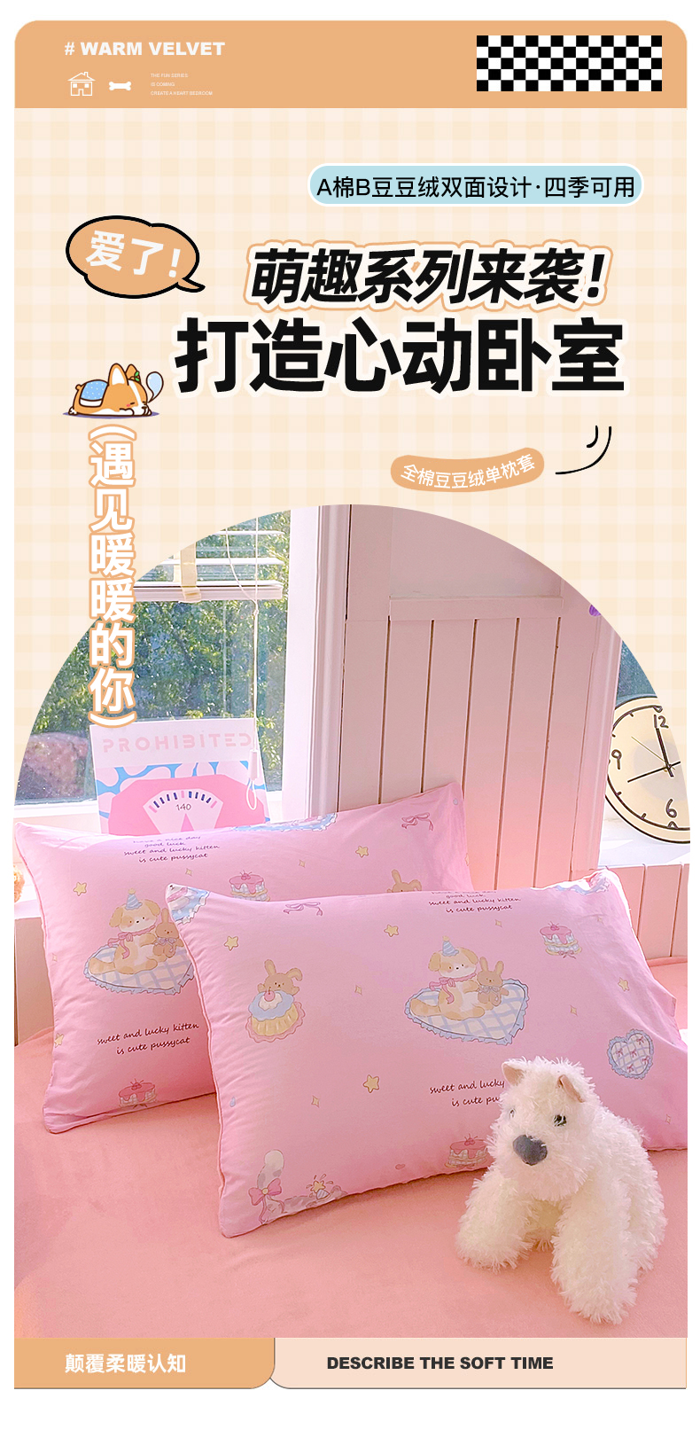 金鑫汇家纺 2025新款全棉豆豆绒系列单枕套-棉加绒系列 棉加豆豆绒-祈愿萌宠粉