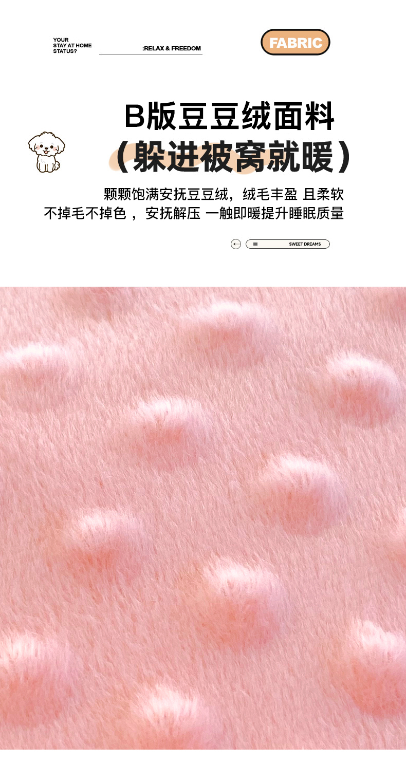 • 91家纺网 家纺一手货源 找家纺 金鑫汇家纺 2025新款全棉豆豆绒系列单枕套-棉加绒系列 棉加豆豆绒-祈愿萌宠粉