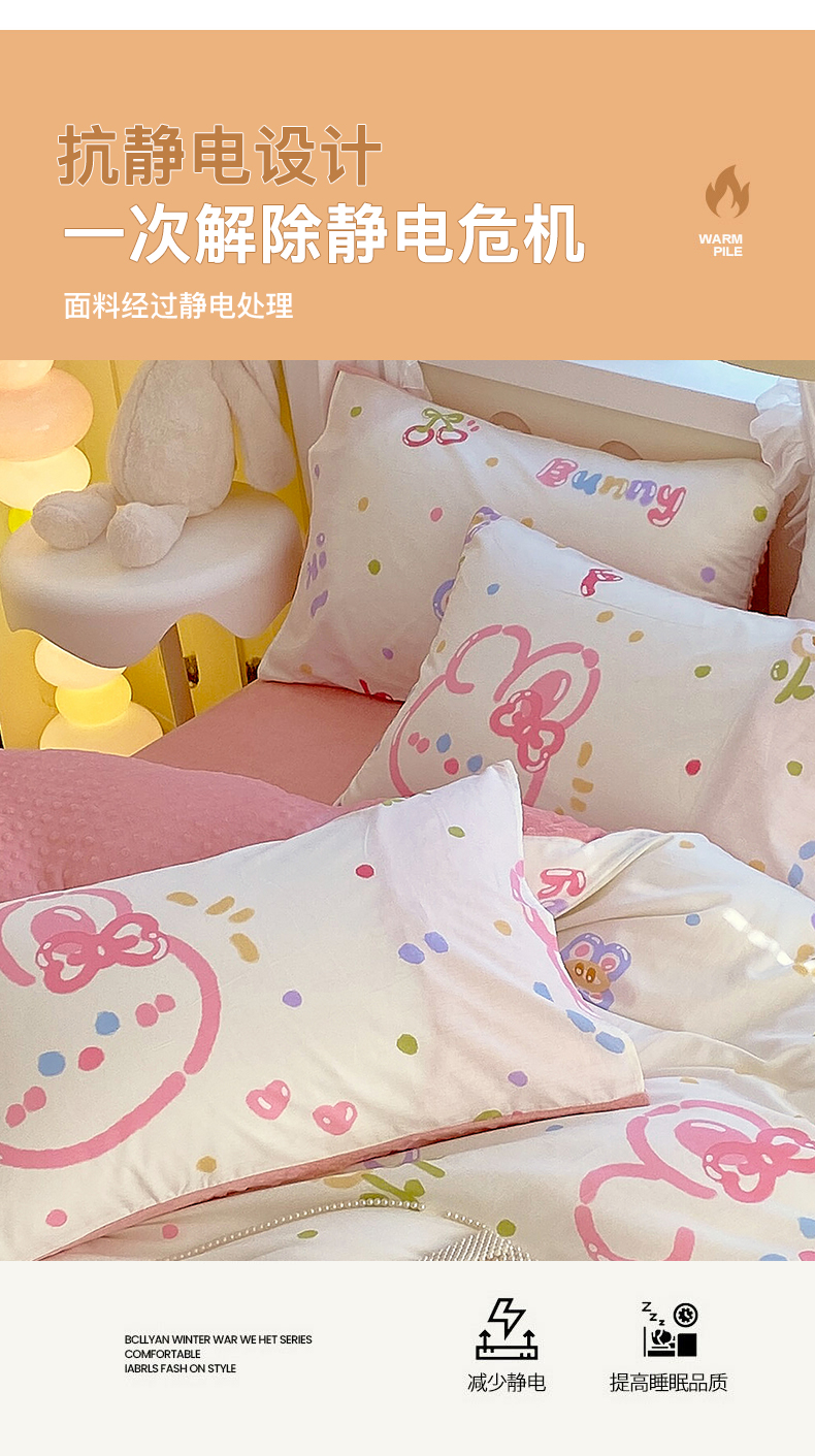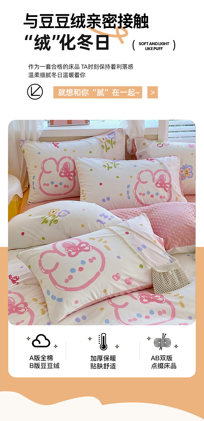 • 91家纺网 家纺一手货源 找家纺 金鑫汇家纺 2025新款全棉豆豆绒系列单枕套-棉加绒系列 棉加豆豆绒-奇趣小兔
