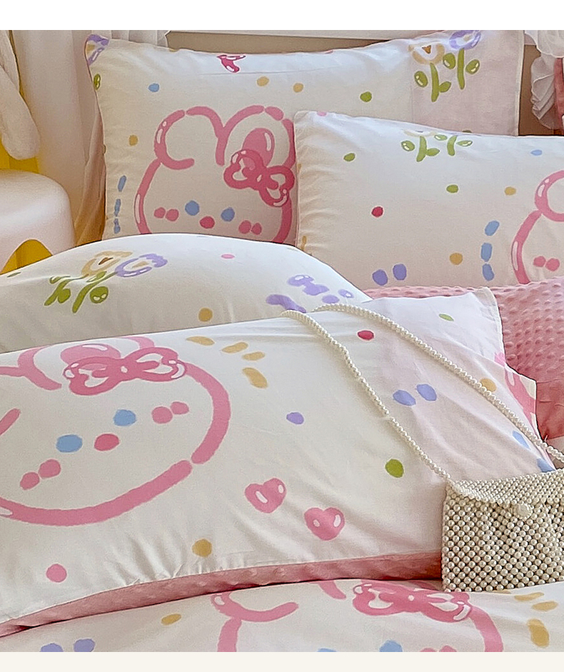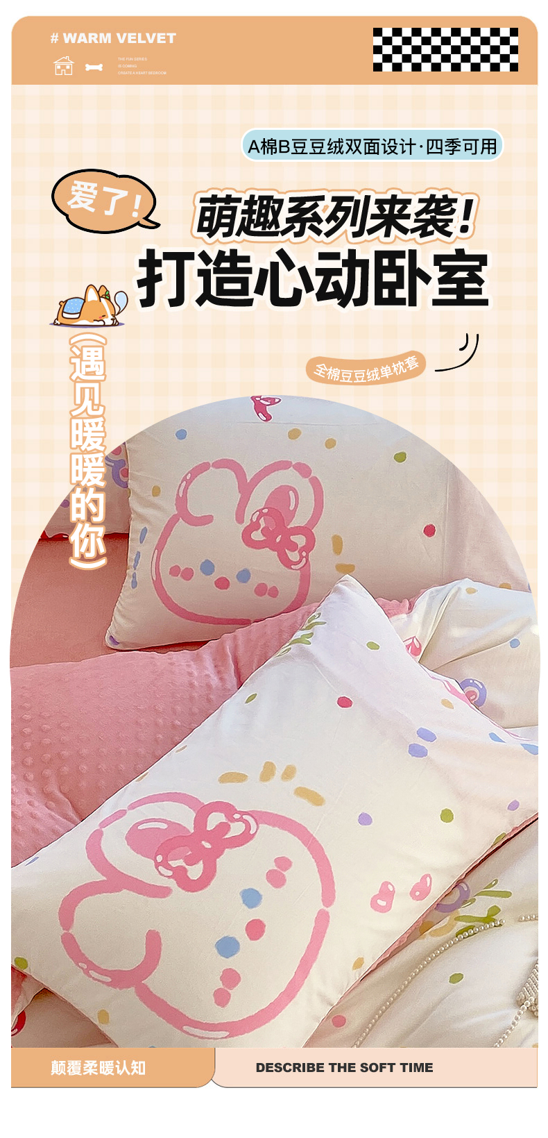 金鑫汇家纺 2025新款全棉豆豆绒系列单枕套-棉加绒系列 棉加豆豆绒-奇趣小兔