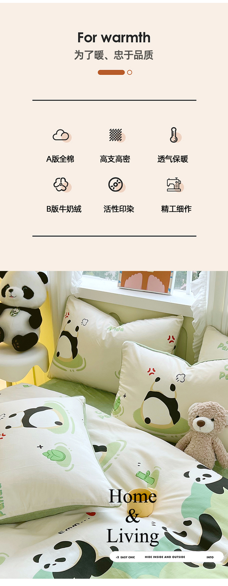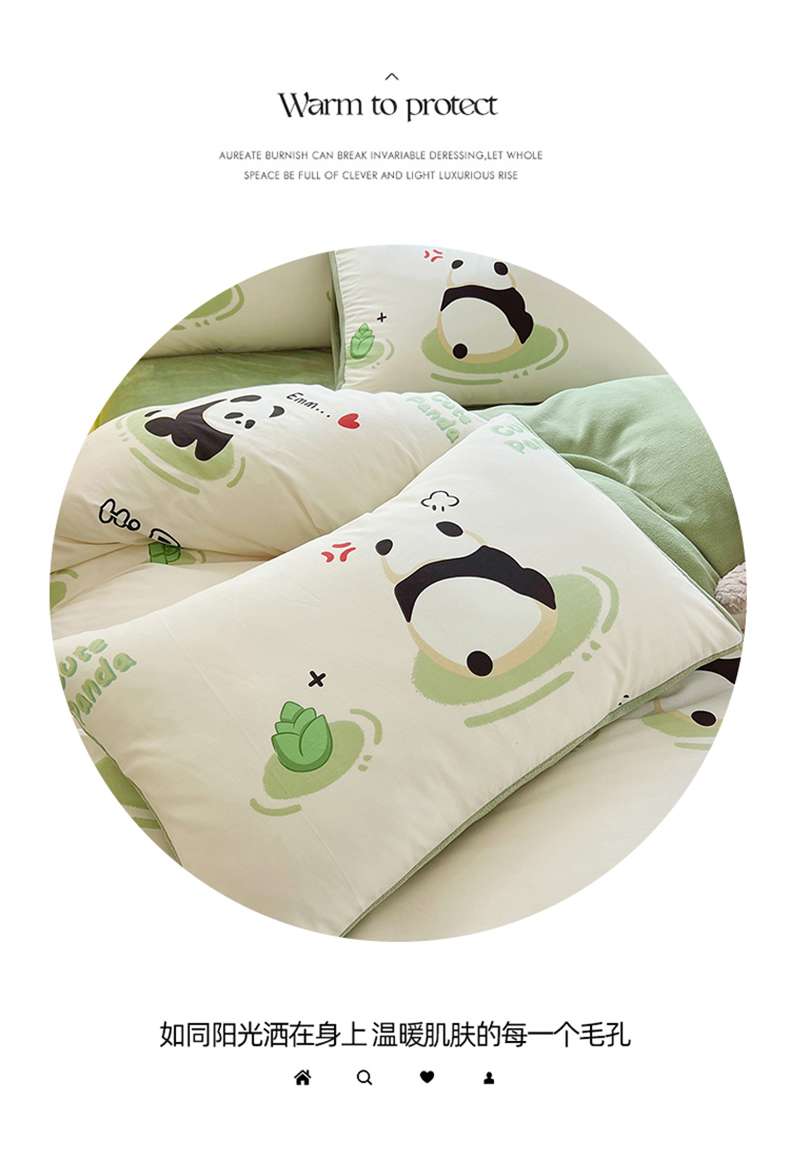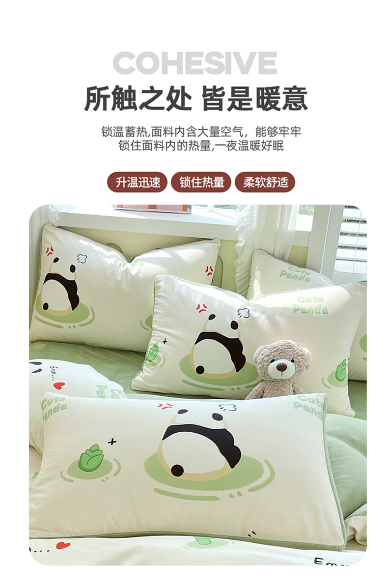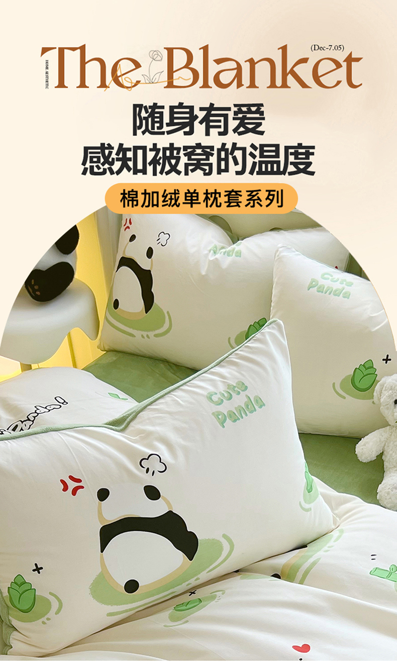 金鑫汇家纺 2025新款全棉豆豆绒系列单枕套-棉加绒系列 棉加绒-熊猫乐园