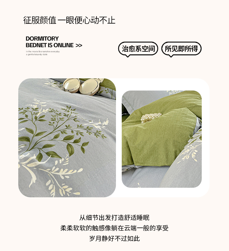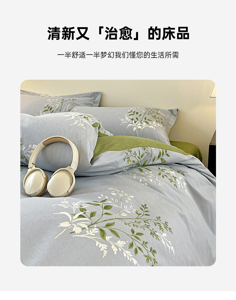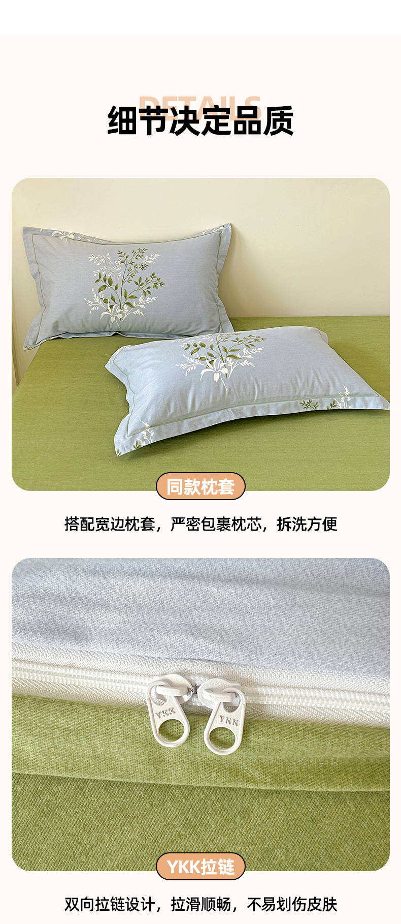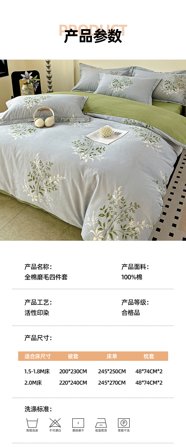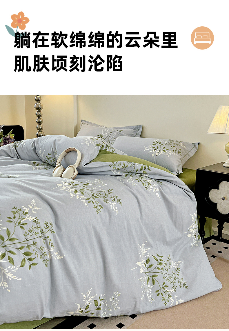 商品名称:亿梵家居 2026新款全棉纯棉磨毛四件套 漫日之夏-绿
