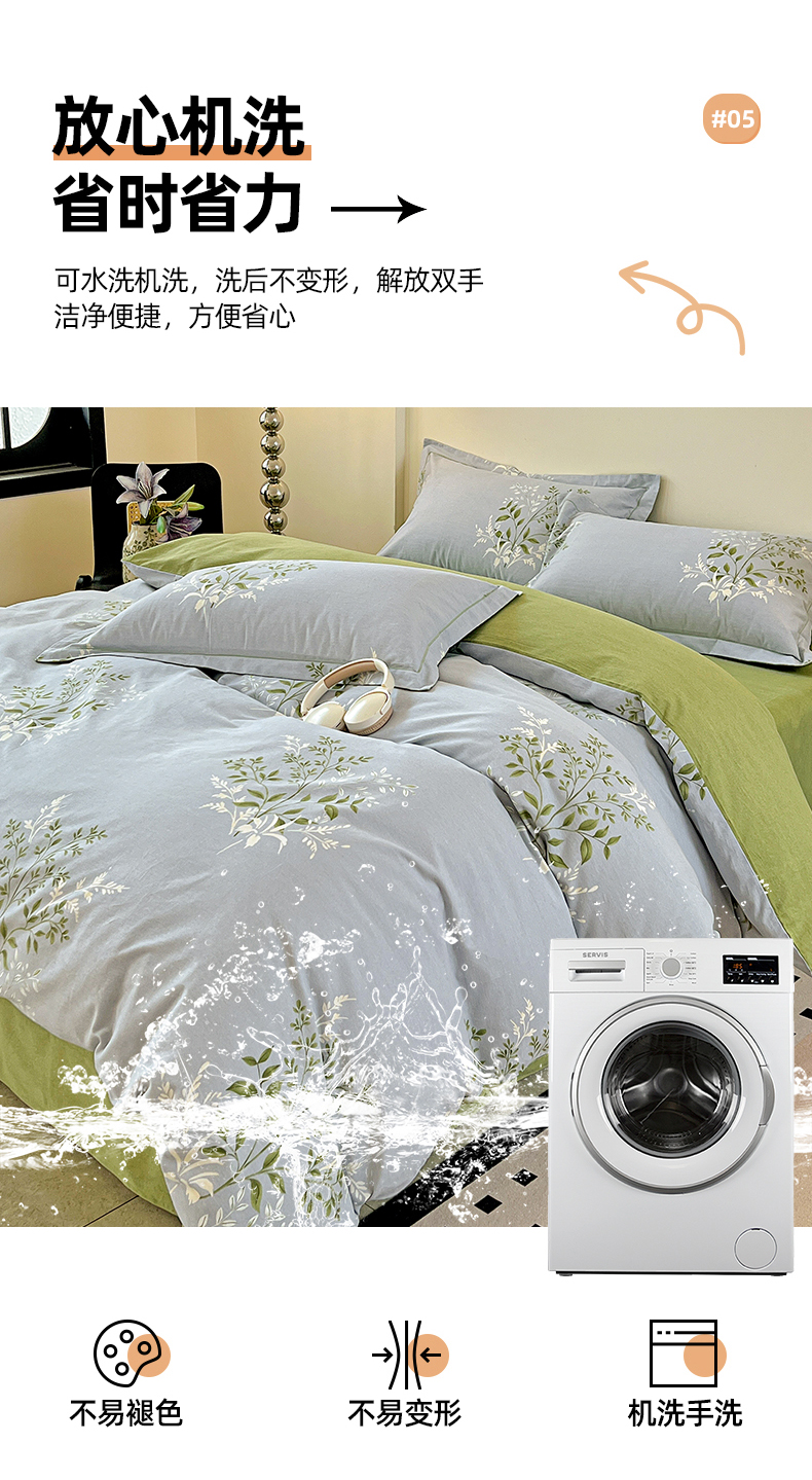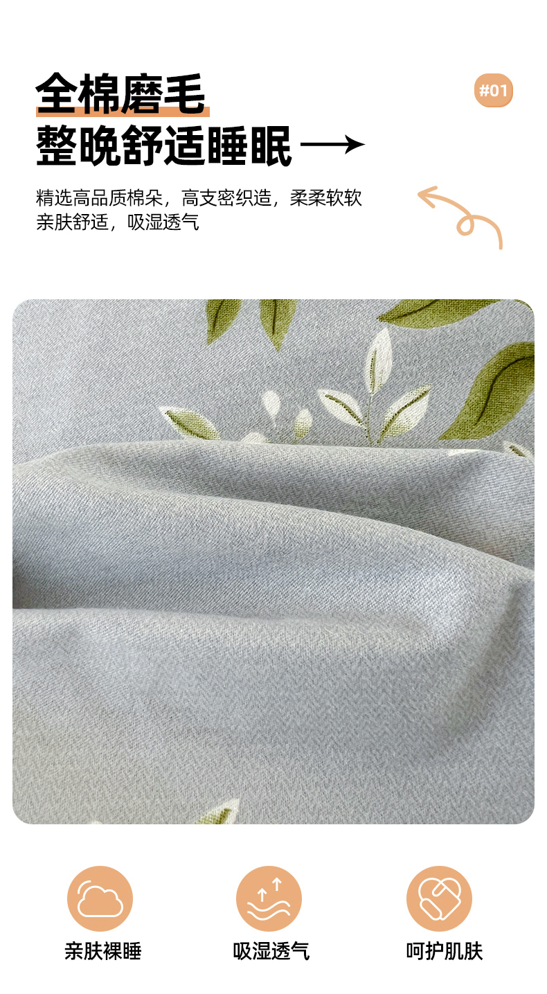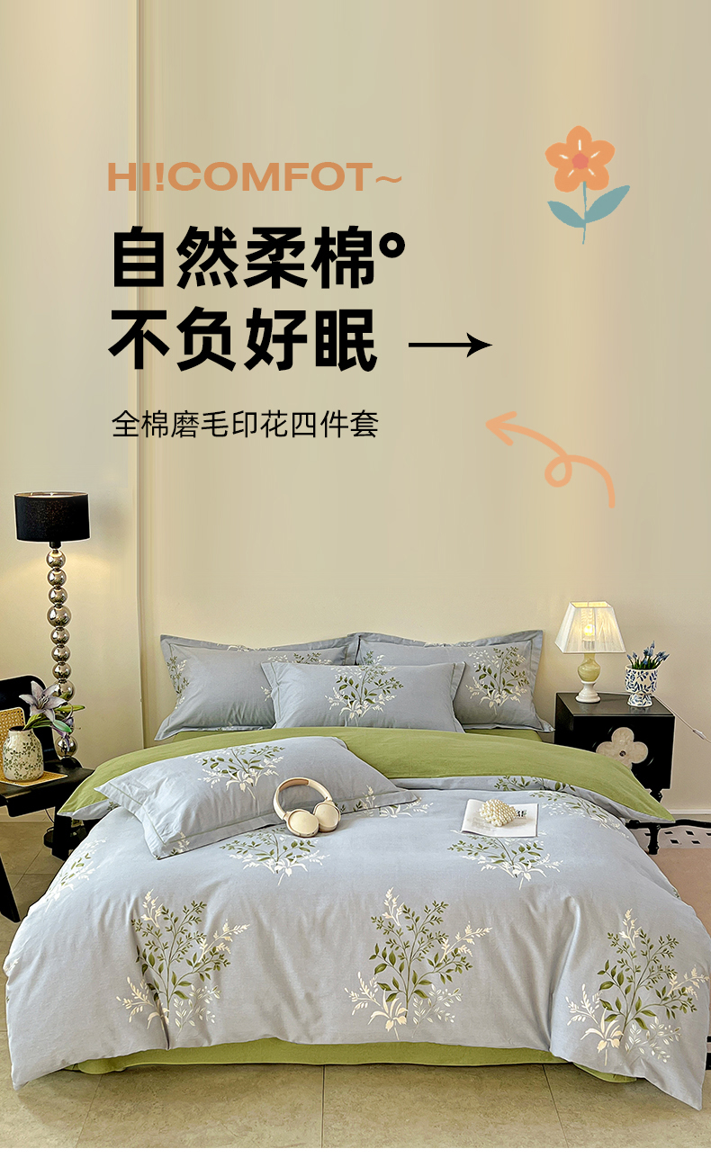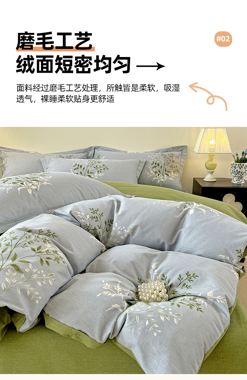 商品名称:亿梵家居 2026新款全棉纯棉磨毛四件套 漫日之夏-绿