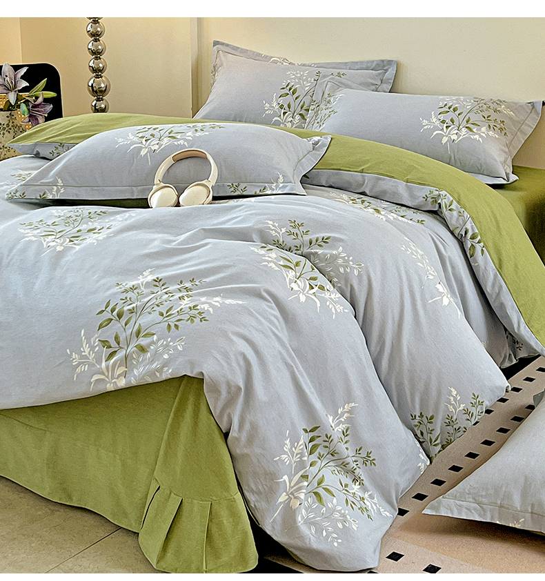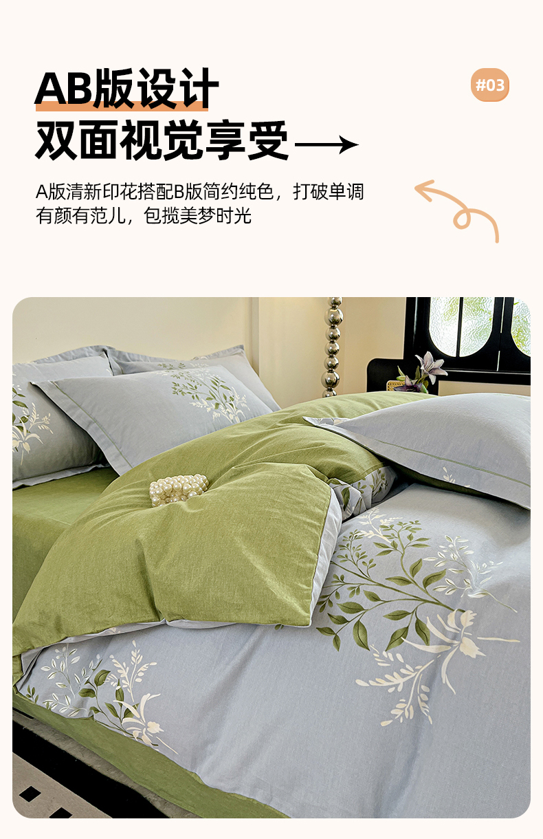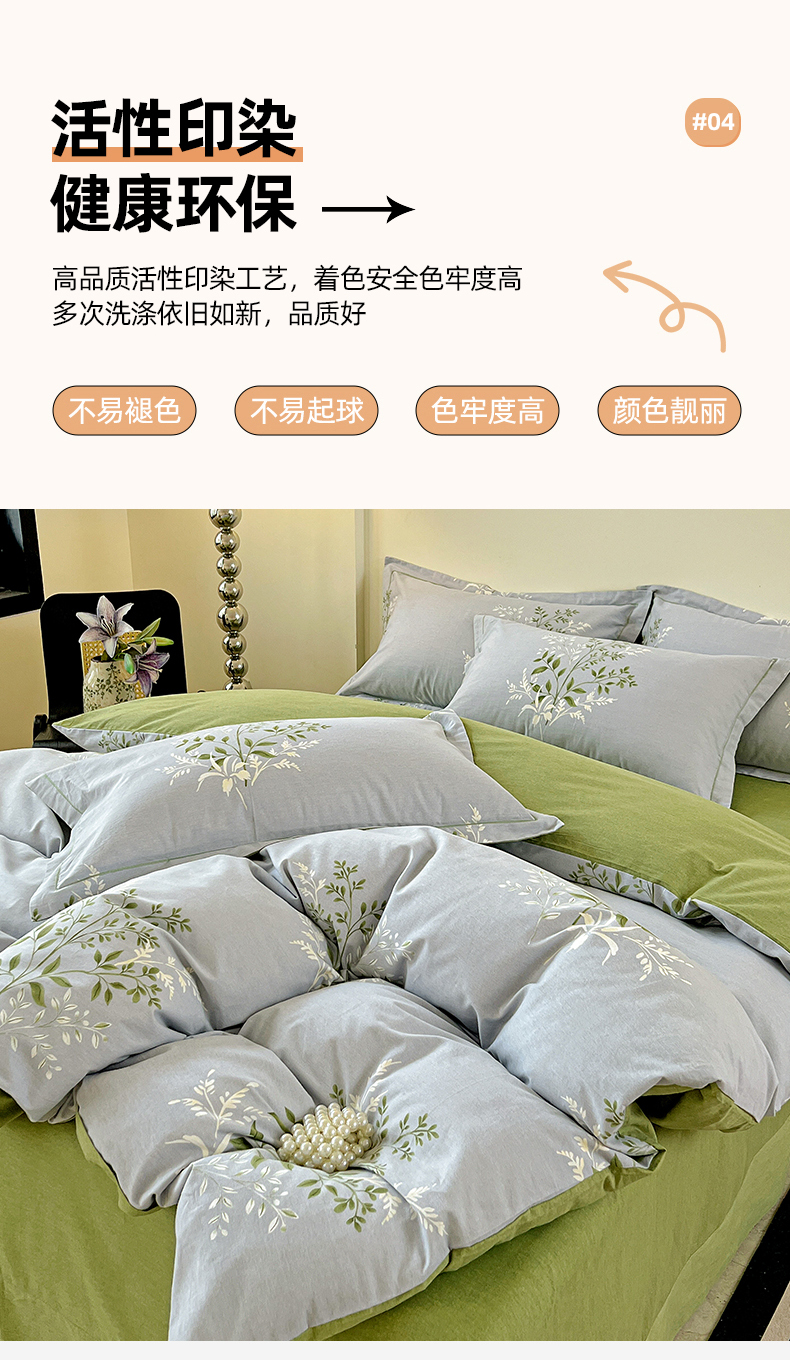 亿梵家居 2026新款全棉纯棉磨毛四件套 漫日之夏-绿