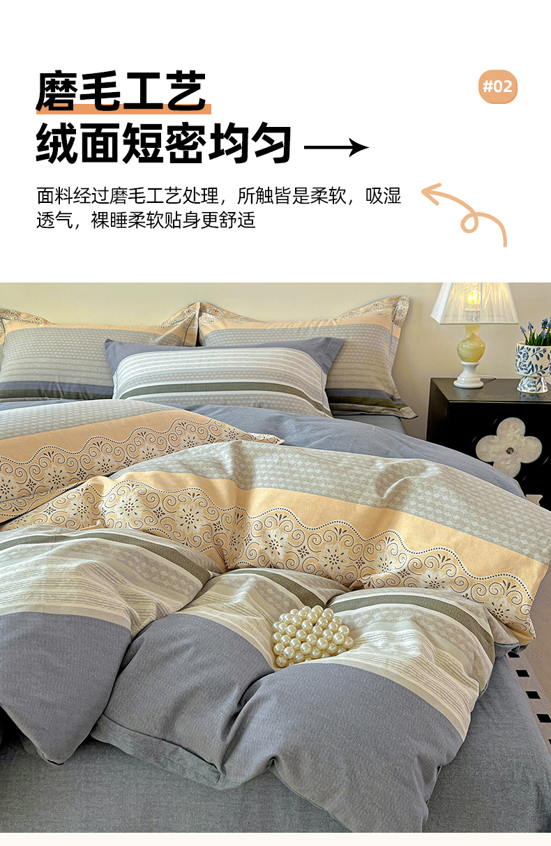 亿梵家居 2026新款全棉纯棉磨毛四件套 肖邦-灰