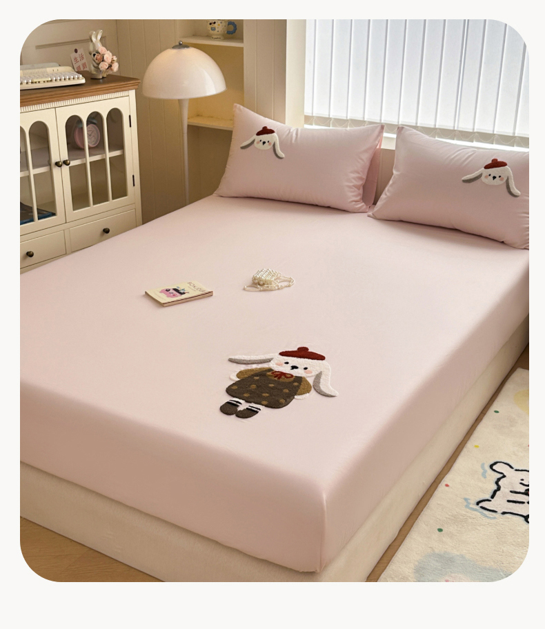卡诗兰 2025新款100支全棉磨毛毛巾绣床笠三件套 垂耳兔