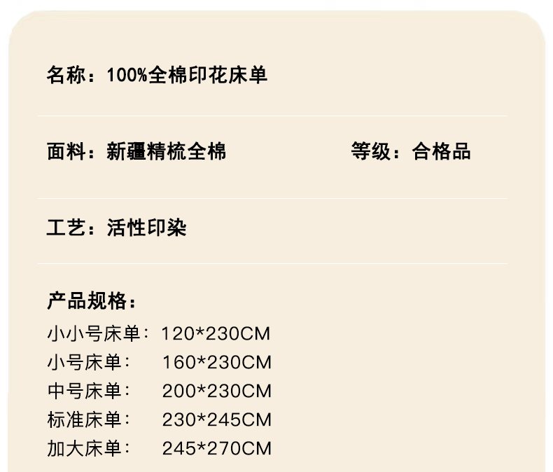 250*270cm加大圆角床单+枕套一对 | ¥50.00 |