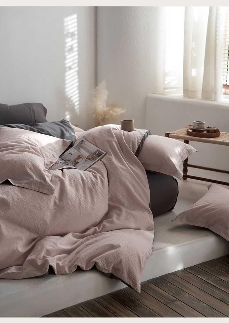 笙意家纺 2025新款全棉A版棉麻B版13372四件套-云缦系列 云缦粉