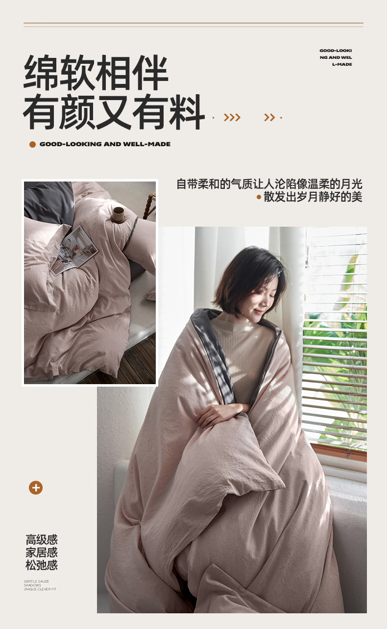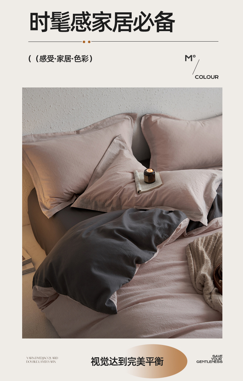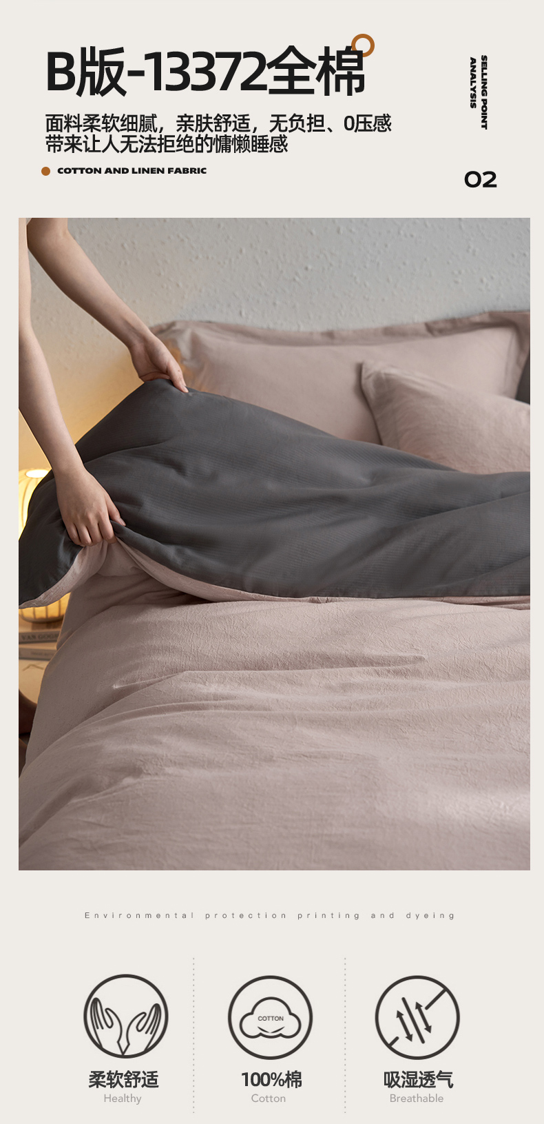 (总)笙意家纺 2025新款全棉A版棉麻B版13372四件套-云缦系列,云缦粉,云缦灰,云缦米
