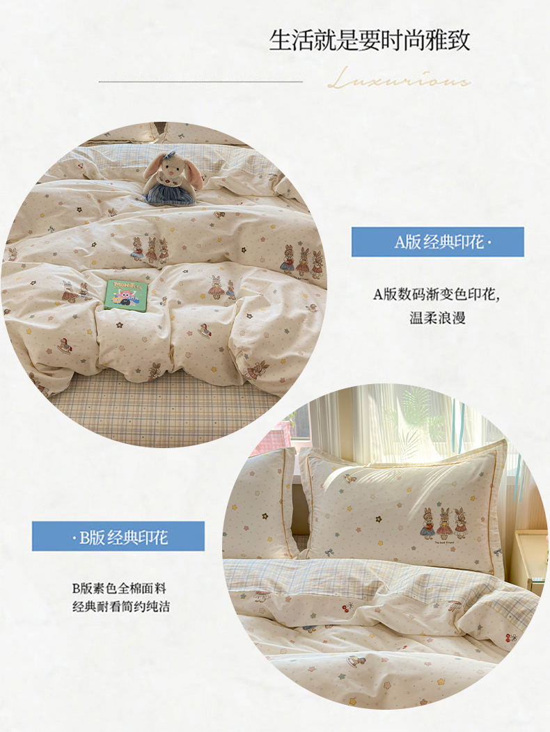 商品名称:乐童家纺 2026新款全棉网红直播爆款吊边一字绣工艺款四件套 珍妮小兔