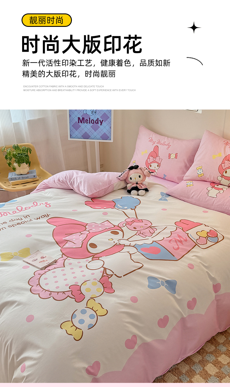 当前位置: 91家纺网 > 商品网购 > 床品套件 > 四件套 > 全棉普通四件套 > 玉元坊 2025新款正版授权三丽鸥系列全棉纯棉三四件套 基础款 糖果美乐蒂-基础款