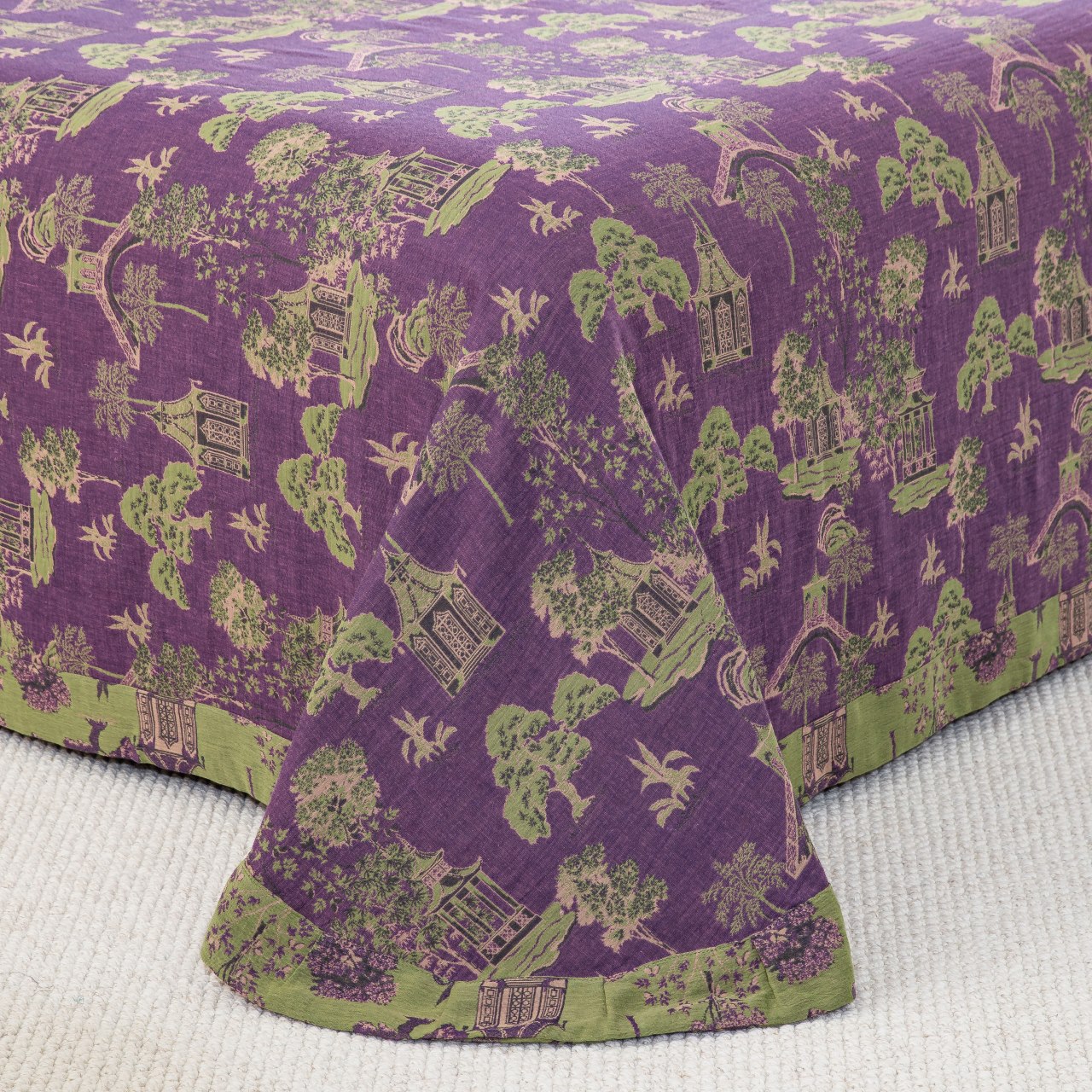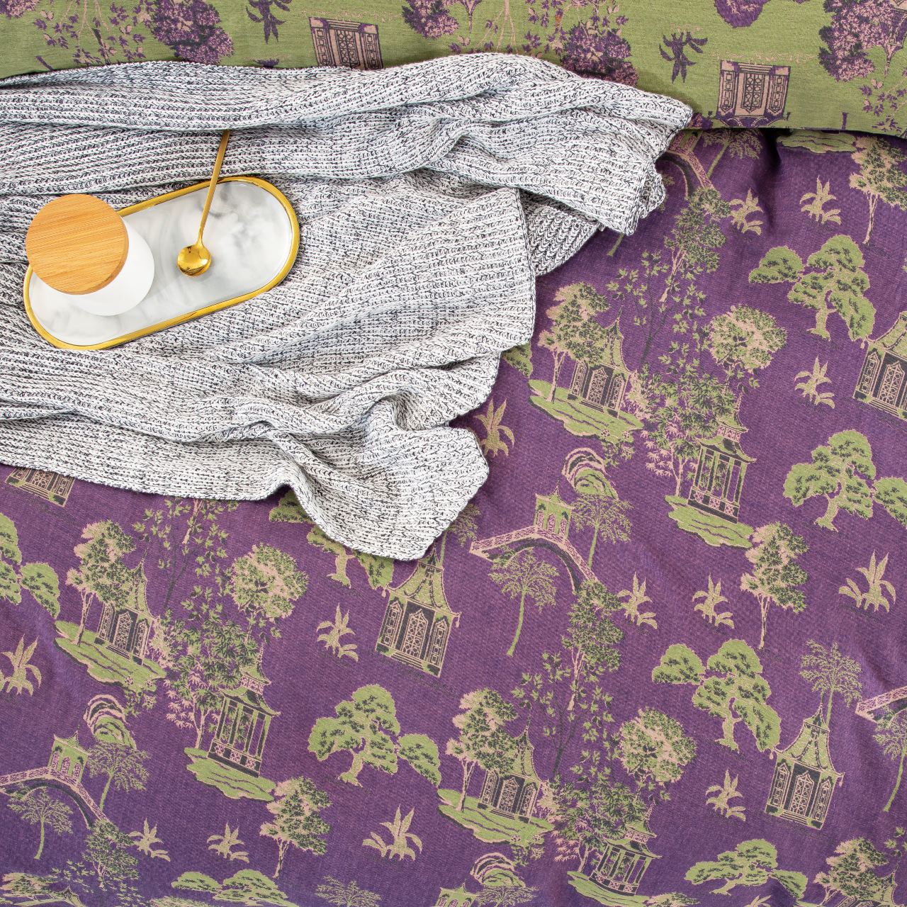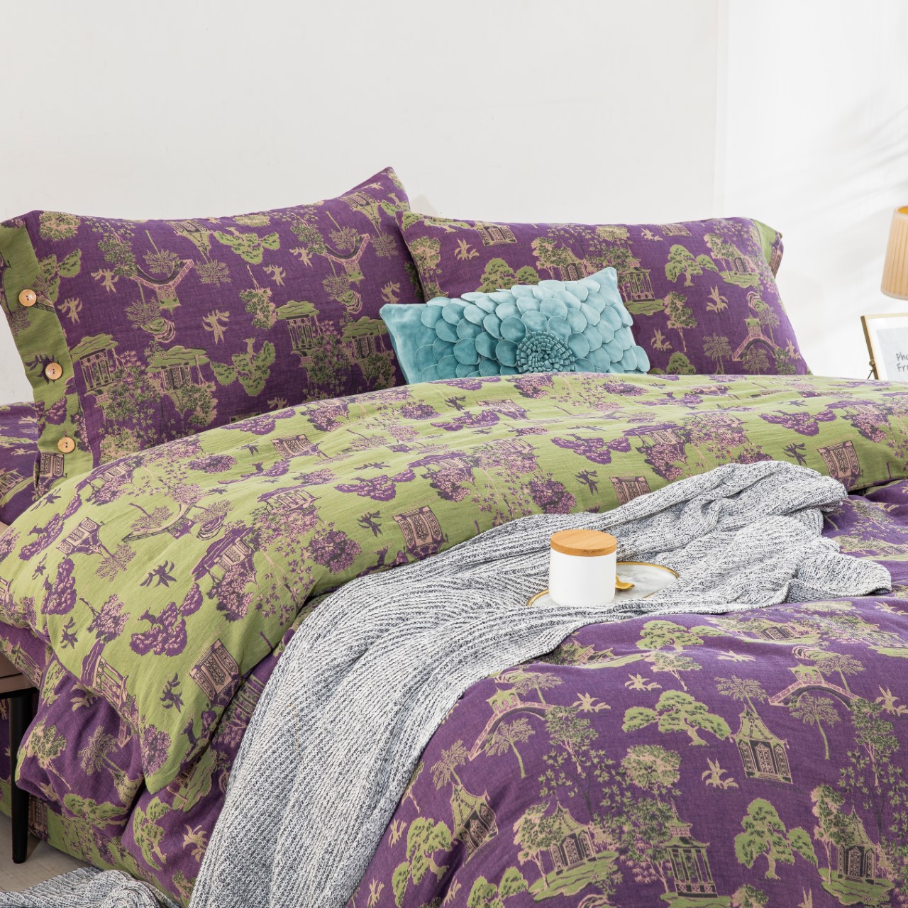 (总)仰望棉麻双层纱供应链 2026新款全棉色织提花双层纱四件套-花茉羽,花茉羽-紫