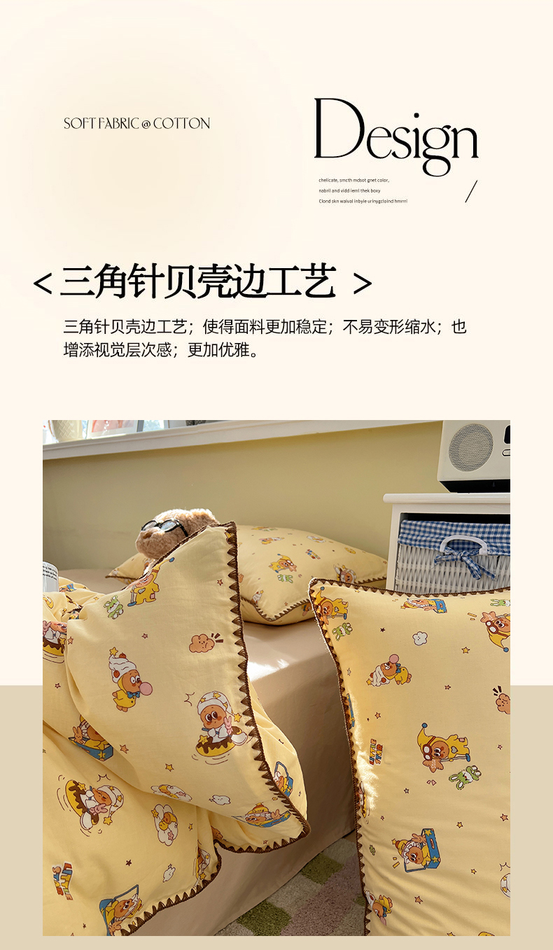 商品名称:典曼家纺 2026新款全棉纯棉有氧双层纱贝壳边四件套 贝壳边星星人