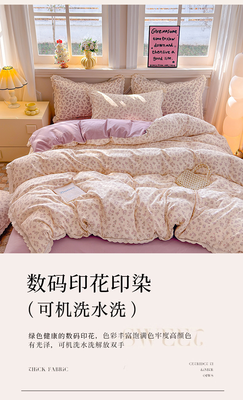 芯贝儿 2026新款古法小清新全棉花边仿棉水洗棉法式四件套件被套床单 星宝