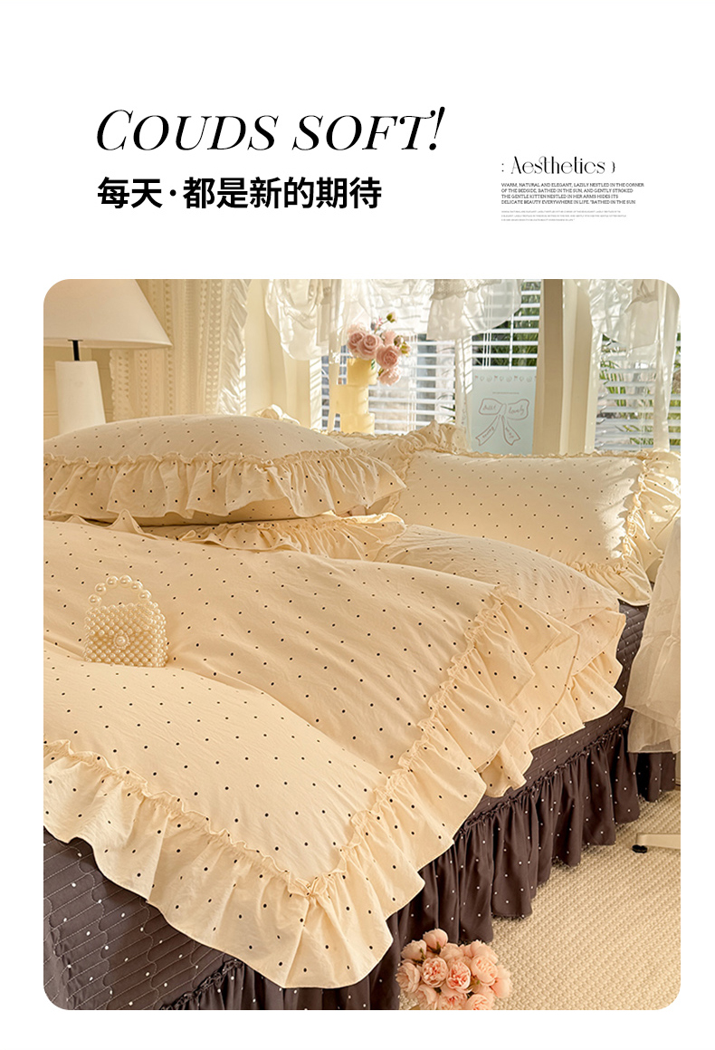 当前位置: 91家纺网 > 商品网购 > 床品套件 > 四件套 > 其它四件套 > 韩约家纺 2026新款法式大花边古法棉感床盖四件套 香兰