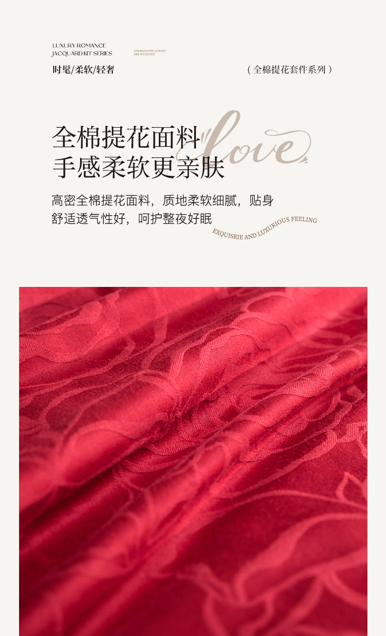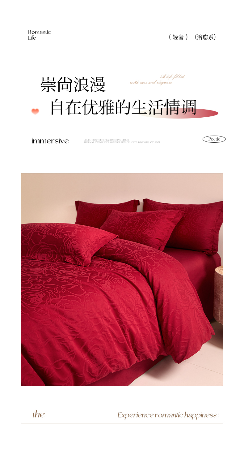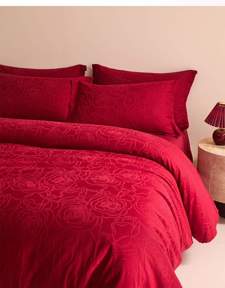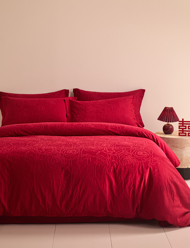 当前位置: 91家纺网 > 商品网购 > 床品套件 > 四件套 > 婚庆四件套 > 格里芬家纺 2026新款全棉水洗立体浮雕提花大红婚庆四件套 玫香-大红