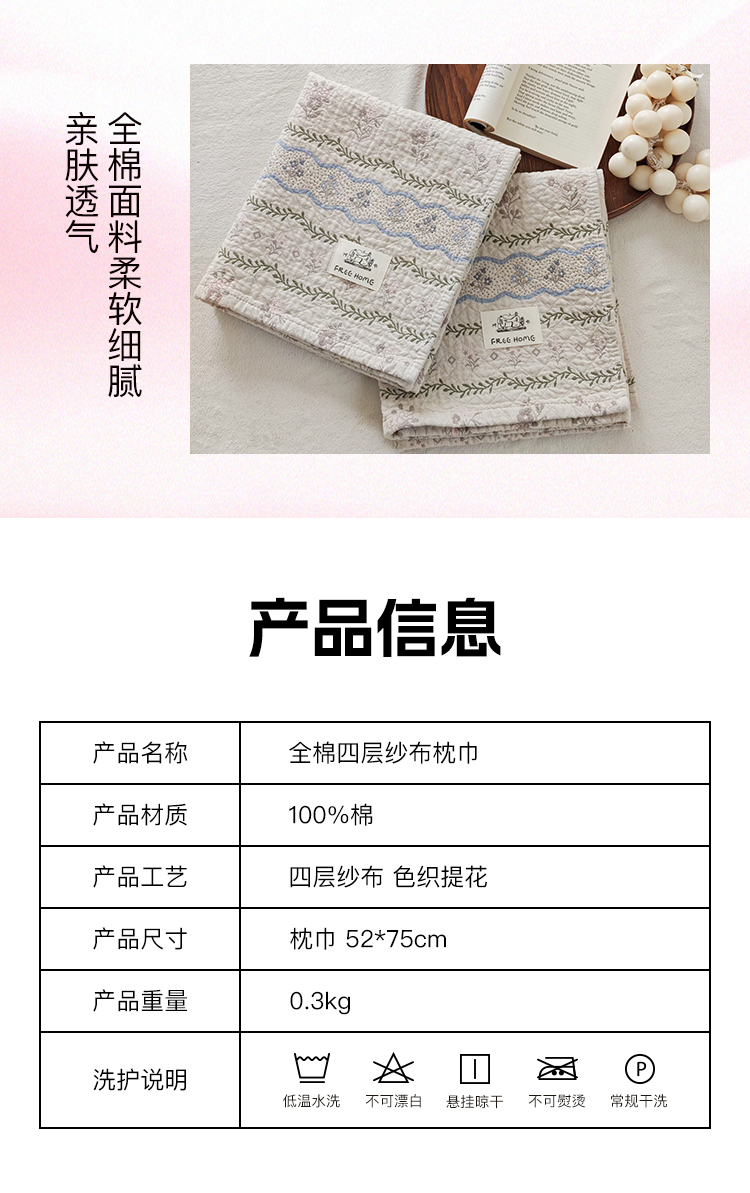 商品名称:沐瑟家纺 2026新款安心棉纯棉纱布枕巾 樱桃花紫