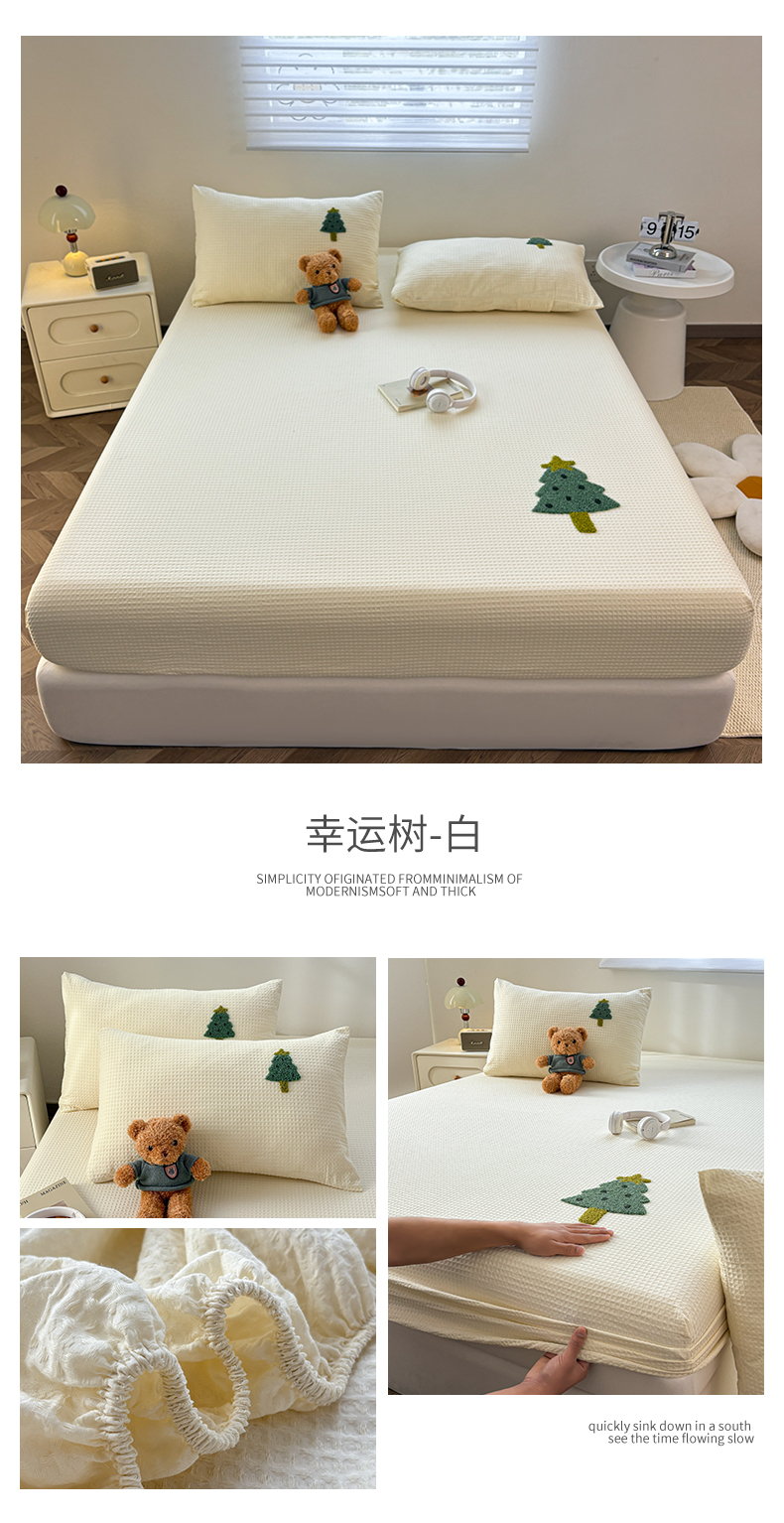 (总)居眠 2025新款防水夹棉床笠-清雅,清雅-粉色,清雅-灰色,清雅-卡其,清雅-绿色,清雅-米白,清雅-深蓝