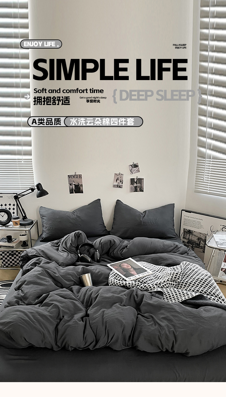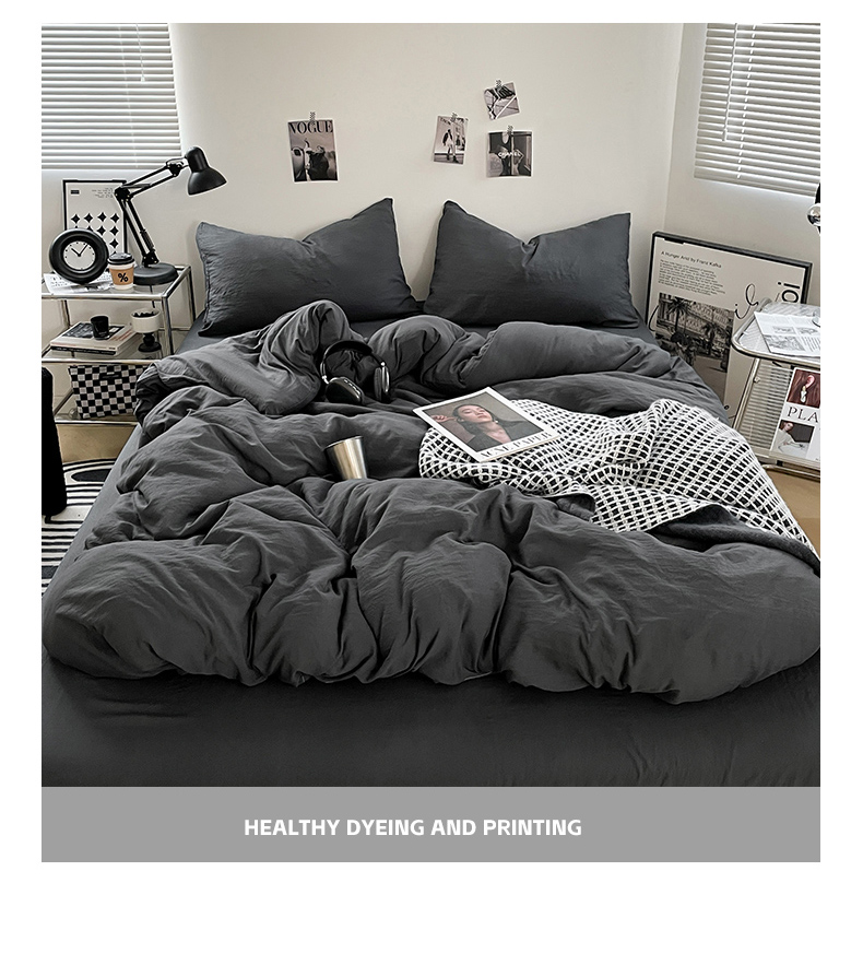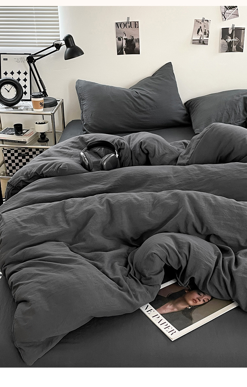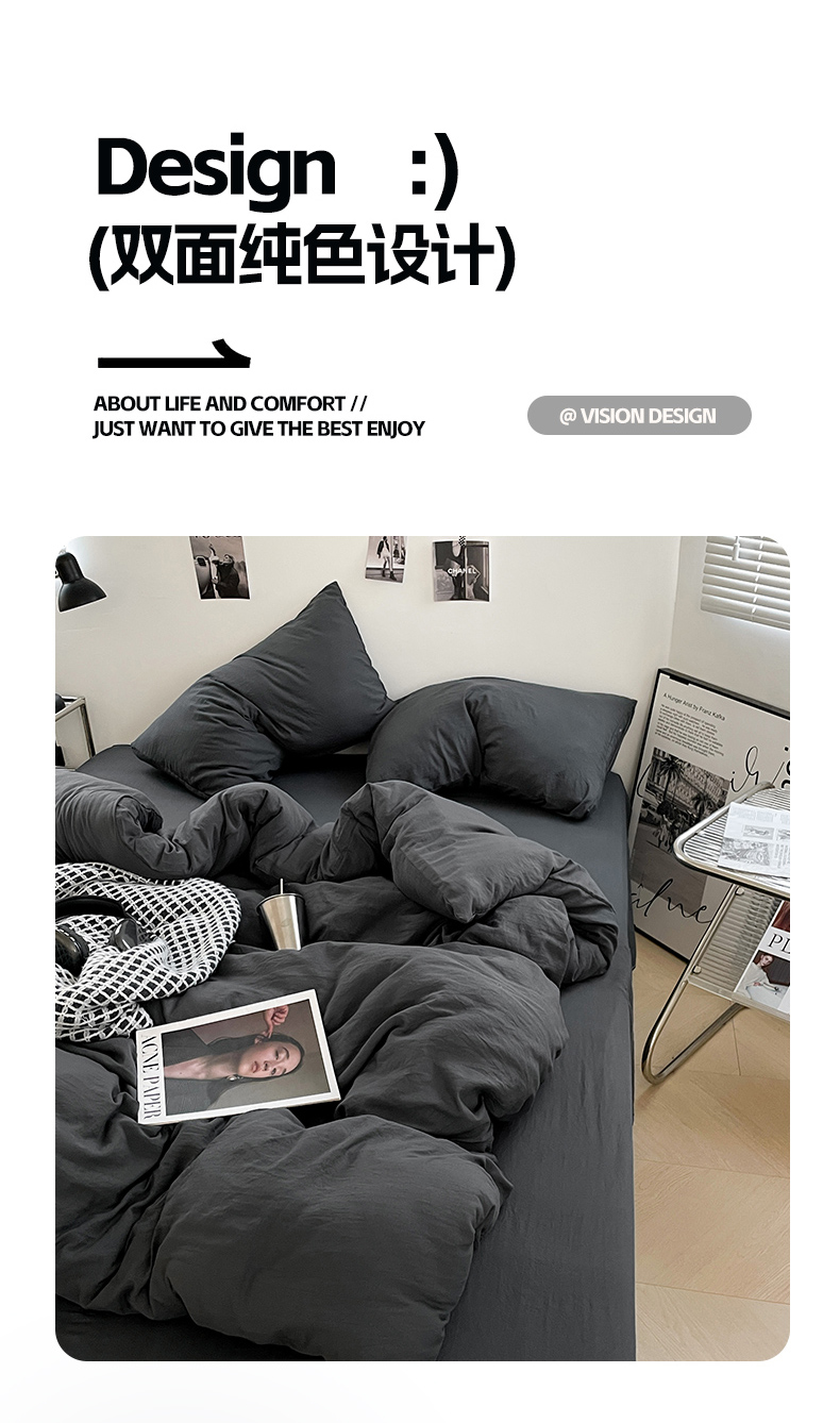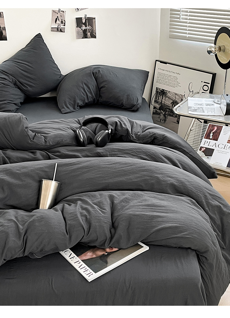 当前位置: 91家纺网 > 商品网购 > 床品套件 > 四件套 > 化纤普通四件套 > 卡斯诺家纺馆 2026新款水洗棉纯色双拼四件套(下载文件包含买家秀) 纯深灰