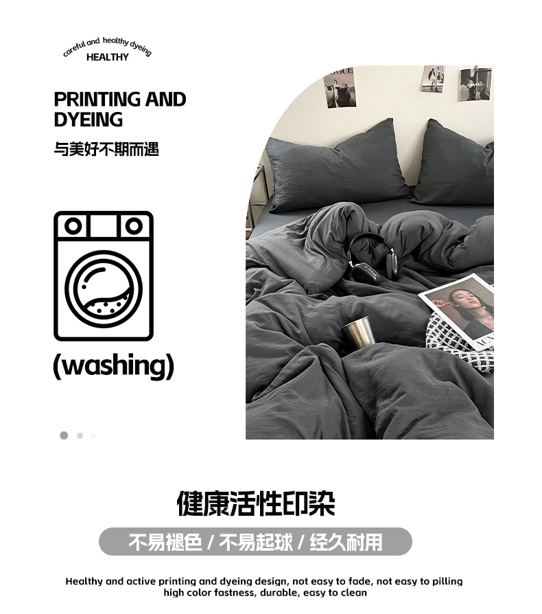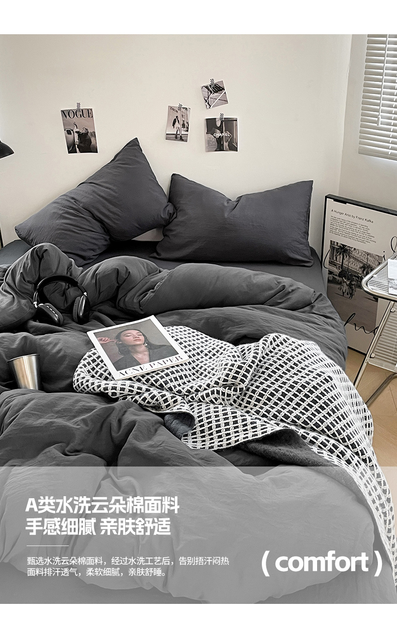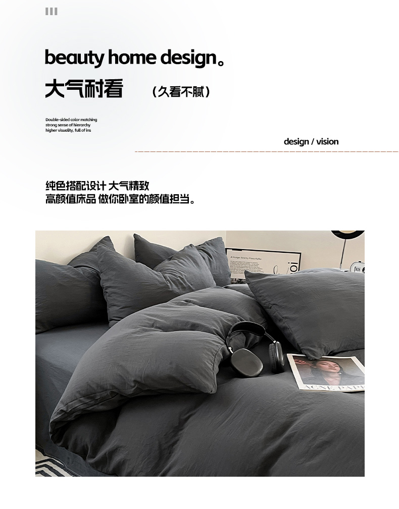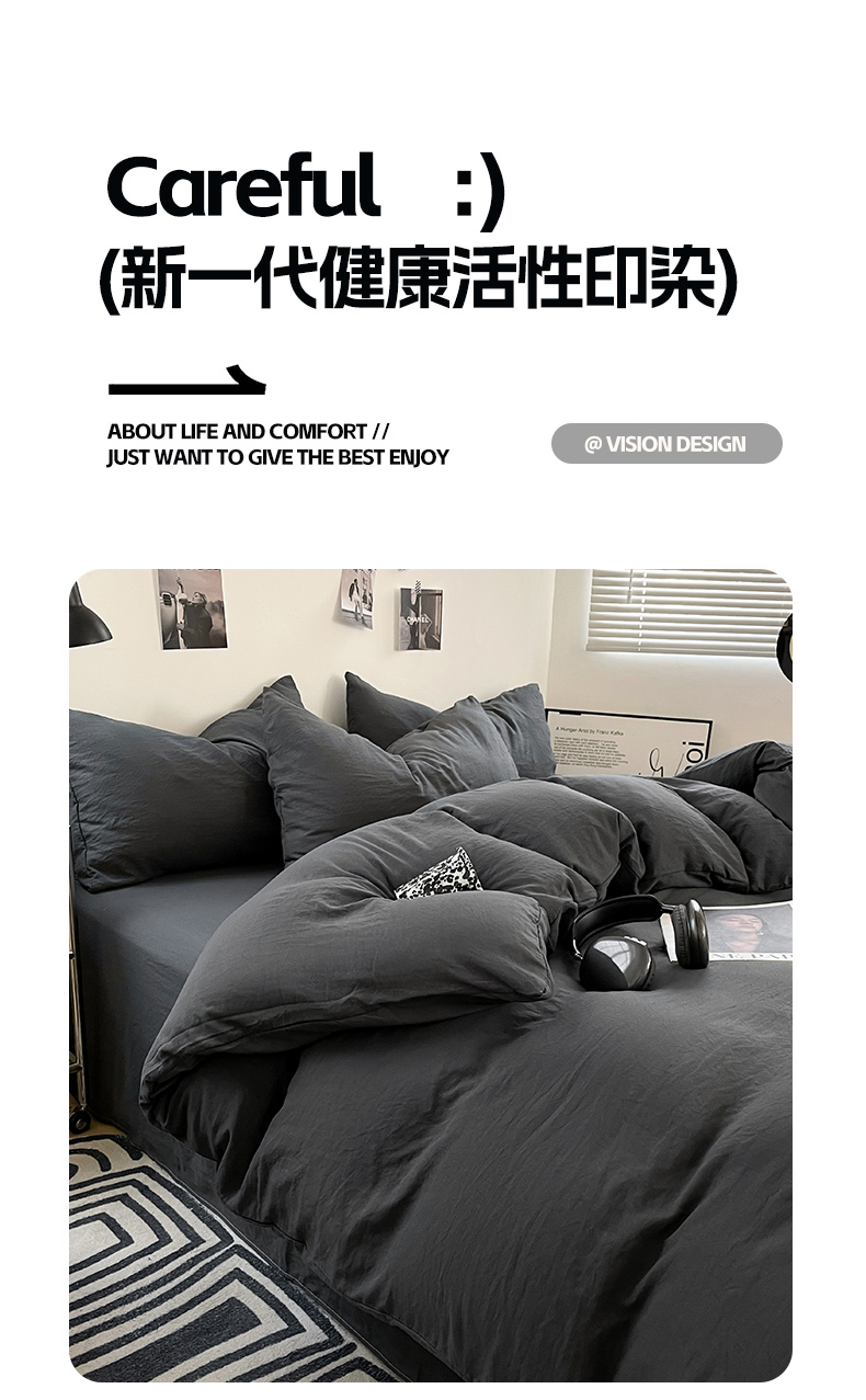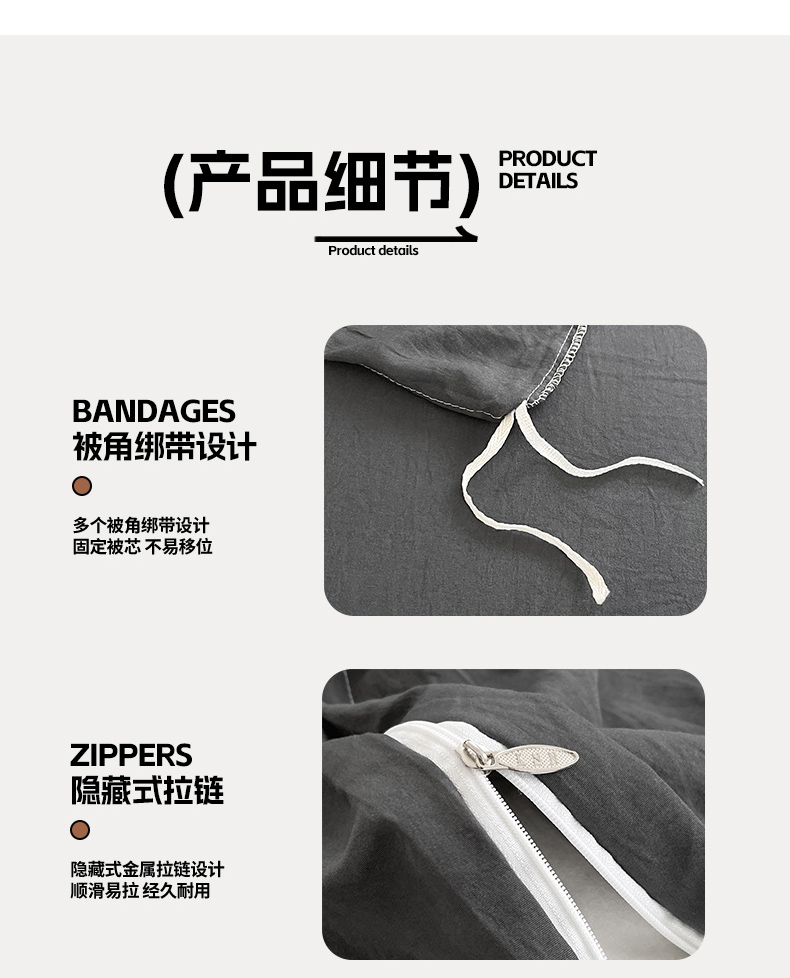 当前位置: 91家纺网 > 商品网购 > 床品套件 > 四件套 > 化纤普通四件套 > 卡斯诺家纺馆 2026新款水洗棉纯色双拼四件套(下载文件包含买家秀) 纯深灰
