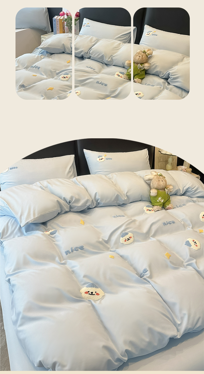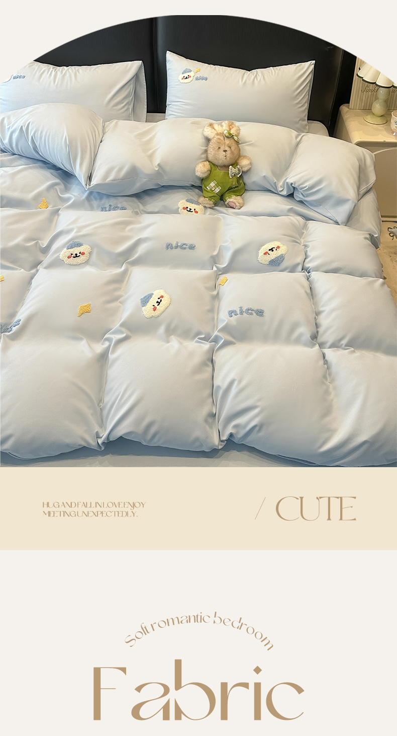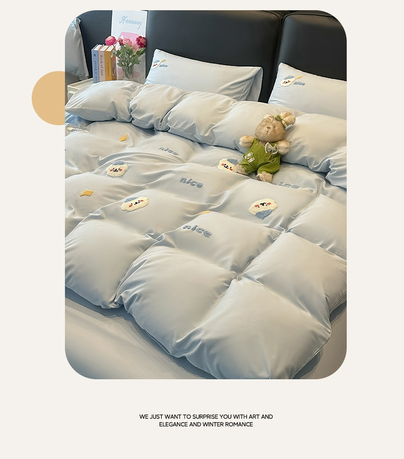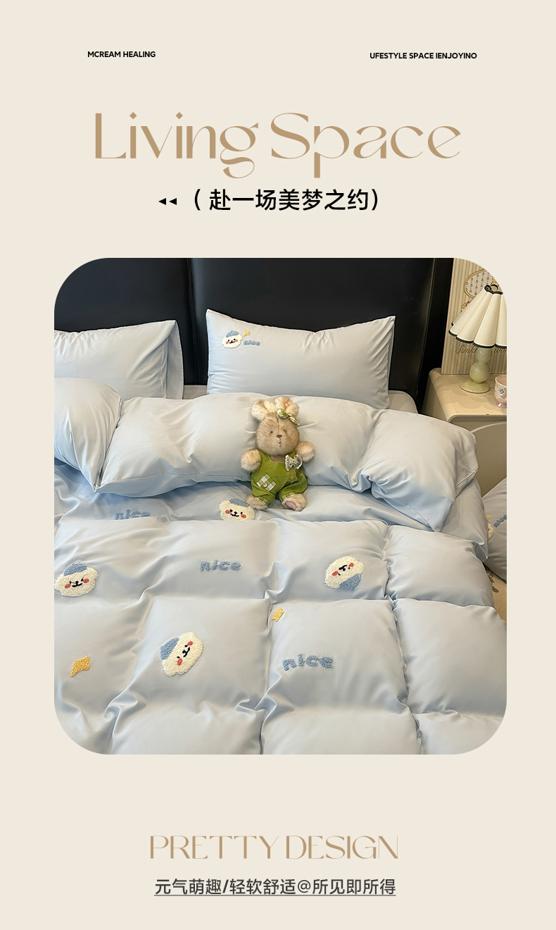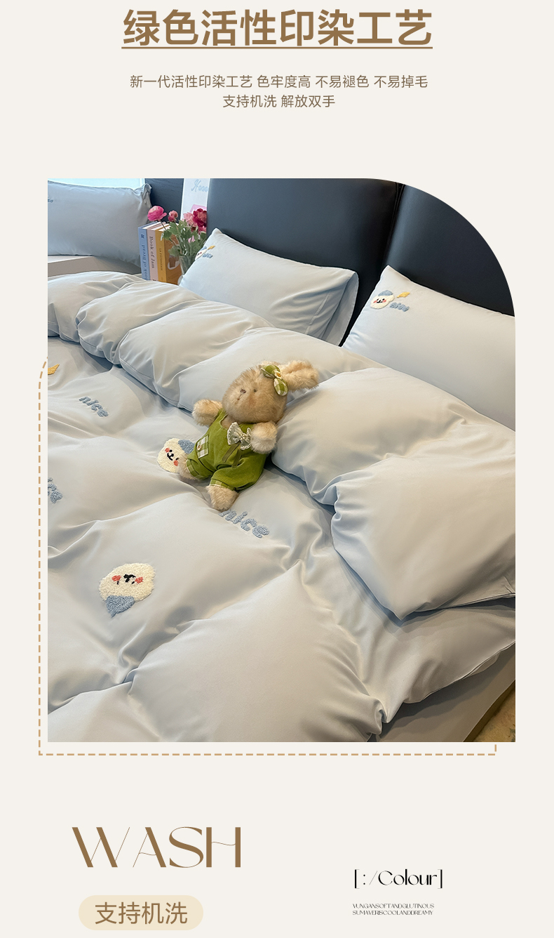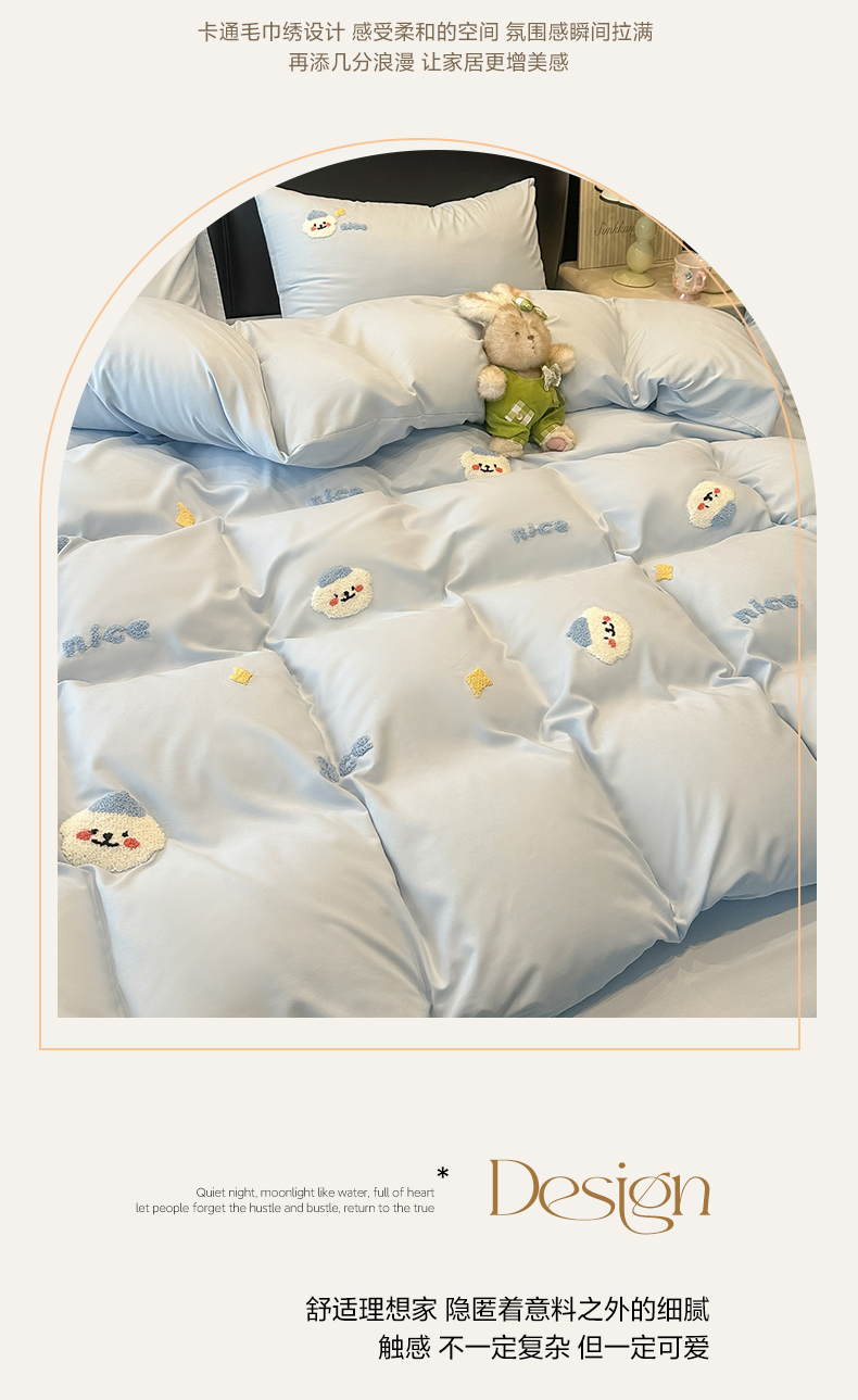 当前位置: 91家纺网 > 商品网购 > 床品套件 > 四件套 > 水洗棉四件套 > 韩巢家纺 2026新款水洗棉毛巾绣四件套 哈哈狗-浅蓝