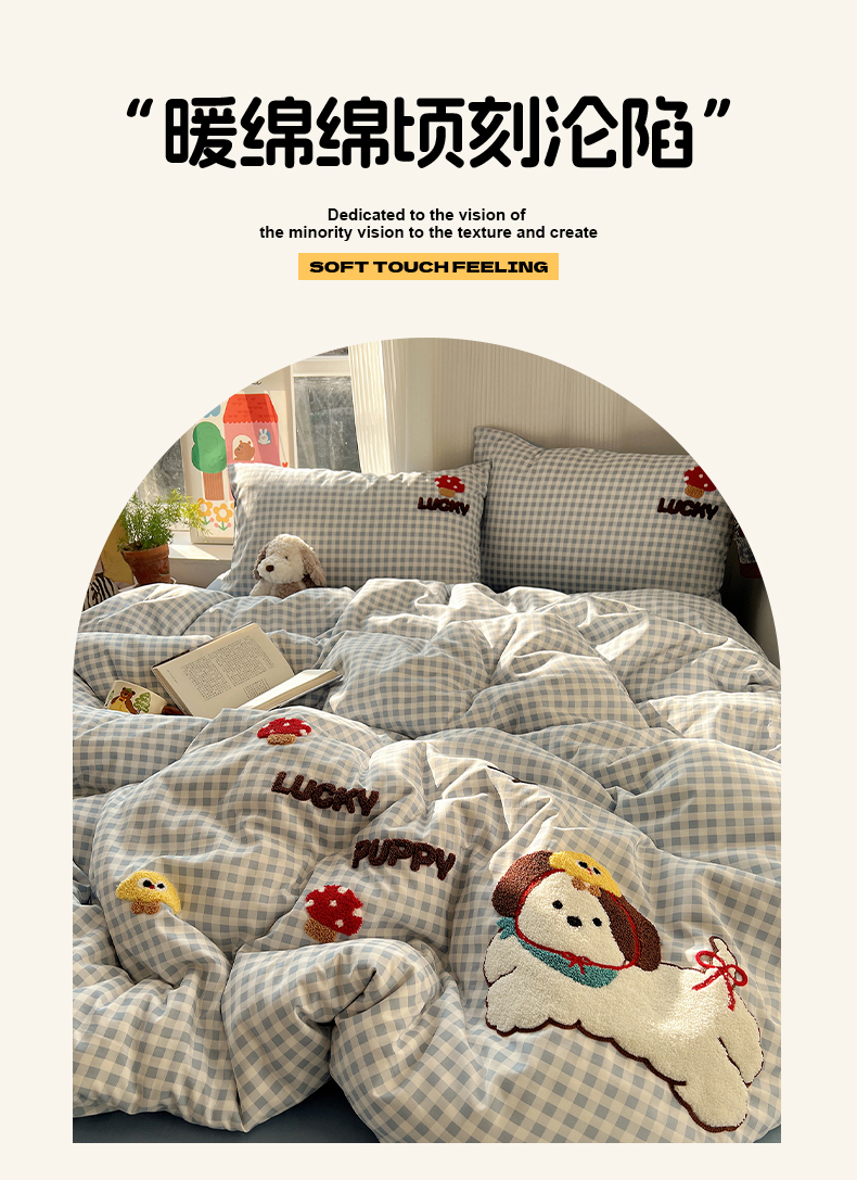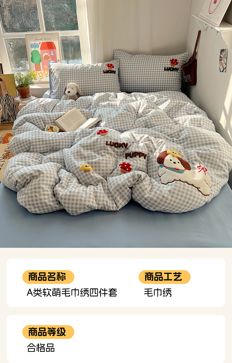 当前位置: 91家纺网 > 商品网购 > 床品套件 > 四件套 > 水洗棉四件套 > 沐芷 2026 【提供买家秀】水洗棉四件套毛巾绣A类仿棉床上用品床单被套三件套可爱小清新 毛巾绣-蘑菇园