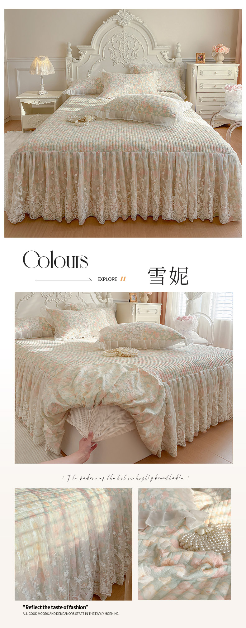 (总)恋尚 2025新款印花竹节纱床笠款床裙四件套(四件套控价220起),春野,花浅,花悦,莫婷,秋茉,甜梦