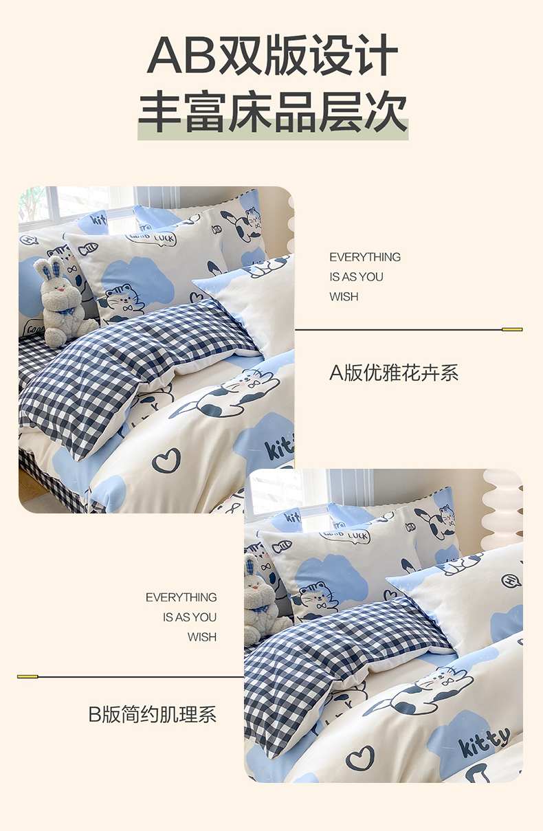 (总)友承家纺 2026新款床上用品磨毛水洗棉四件套被单被套学生宿舍单人三件套被罩单件四季通用,卡通乐园,期待,海豚湾,可爱猫,富士山下,初遇,爱心小熊,baby熊,欢乐狗米,吉祥鹿兰,鲸鱼,兰大格,恋爱味道,萌萌,慕尼黑,深海情缘,淘气猫兰,淘气猫绿,网红雏菊兰,网红雏菊绿,小可爱,小恐龙,星空之约,幸运花,云朵