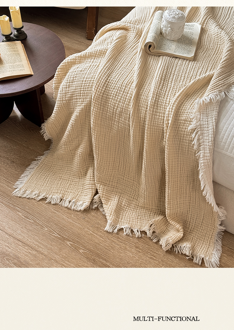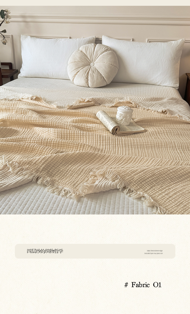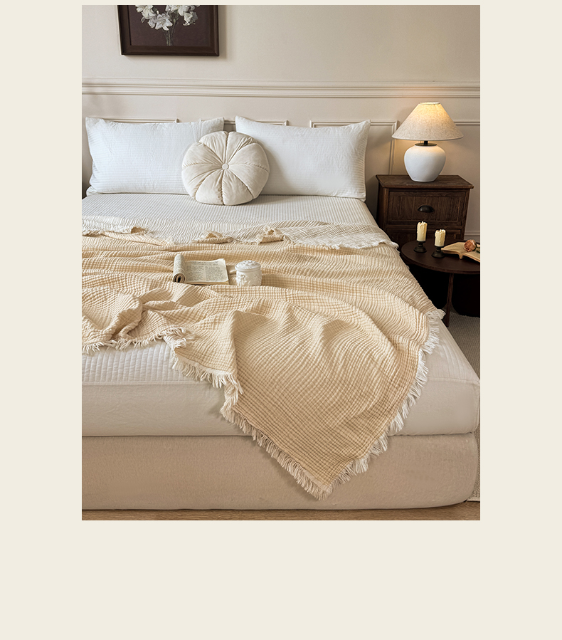 帅露家纺 2026新款全棉四层纱多功能盖毯毛毯 象牙白
