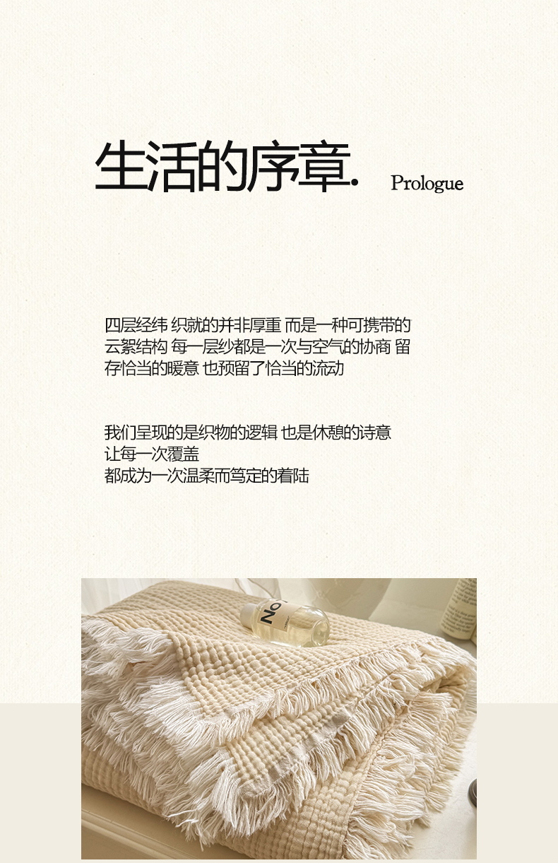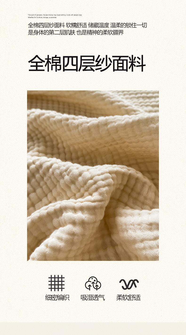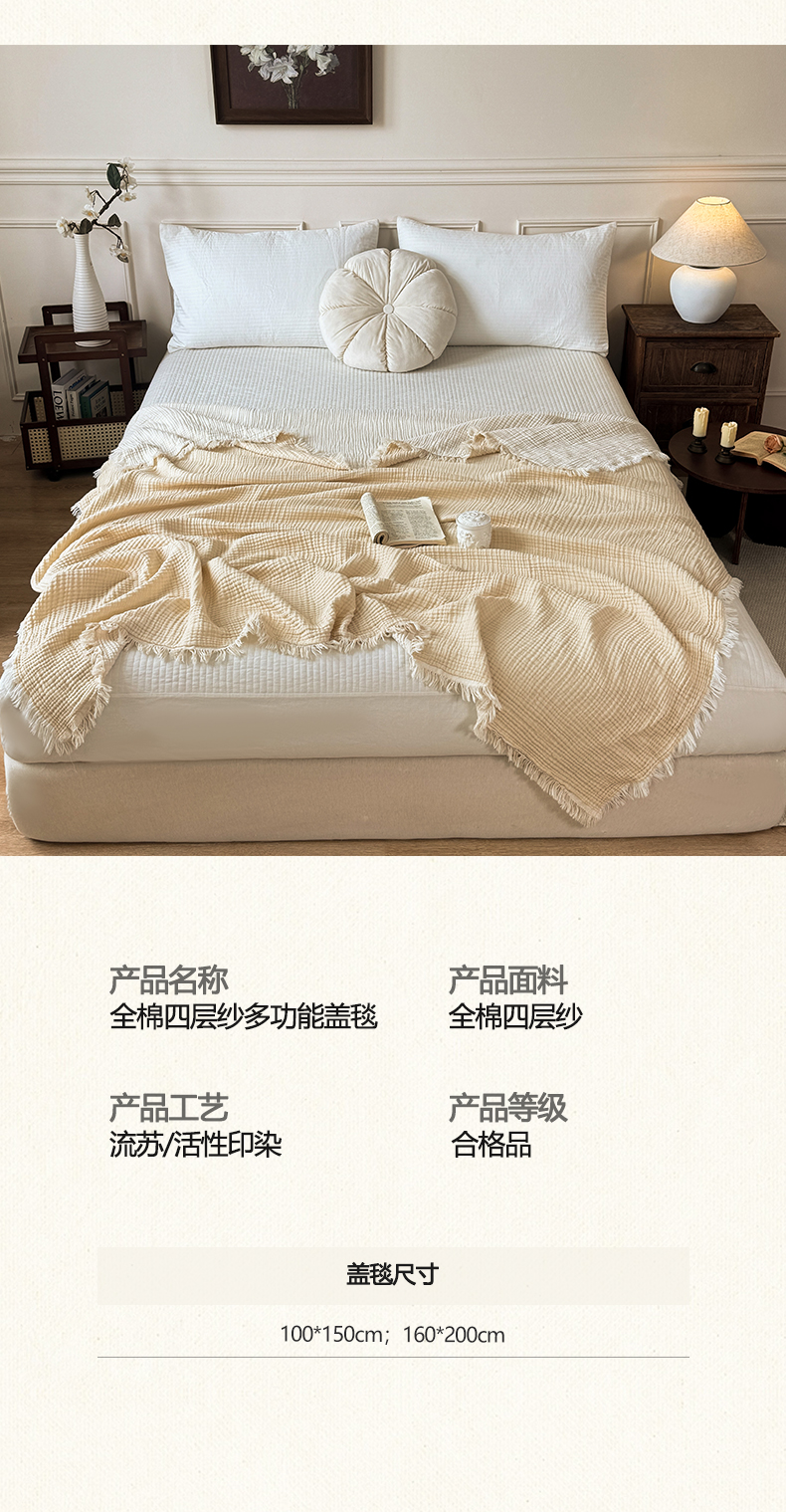 商品名称:帅露家纺 2026新款全棉四层纱多功能盖毯毛毯 象牙白