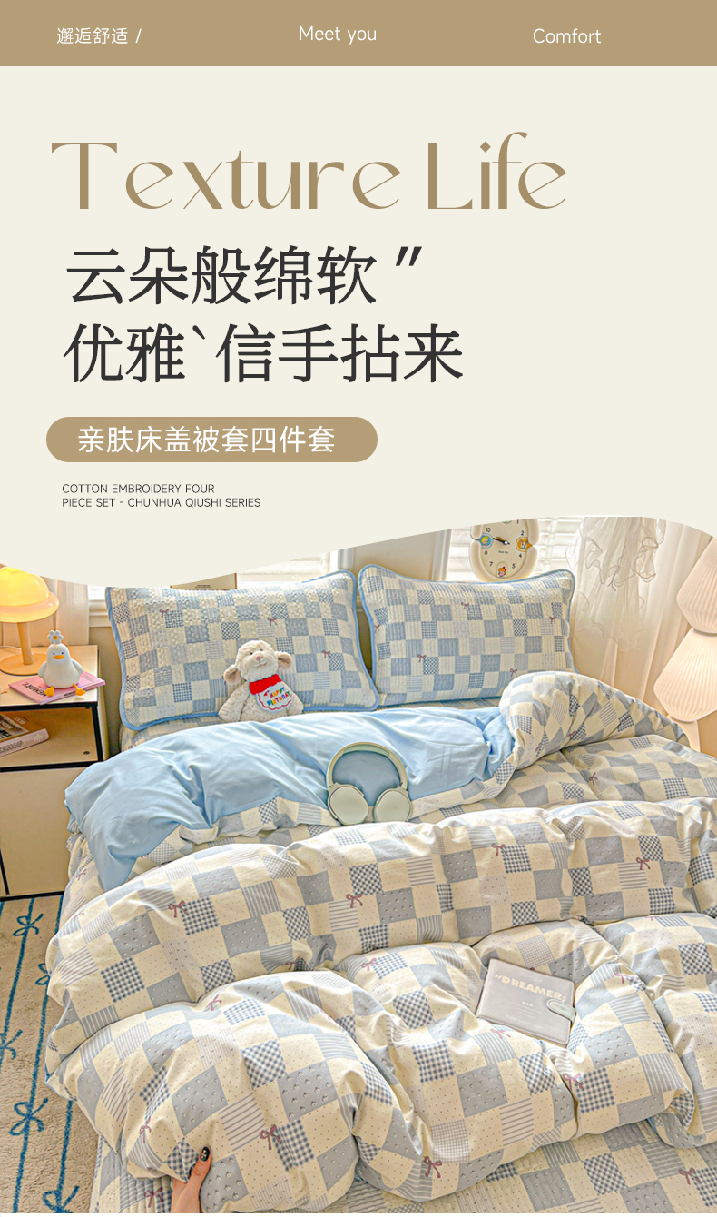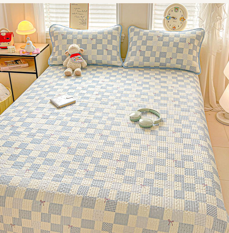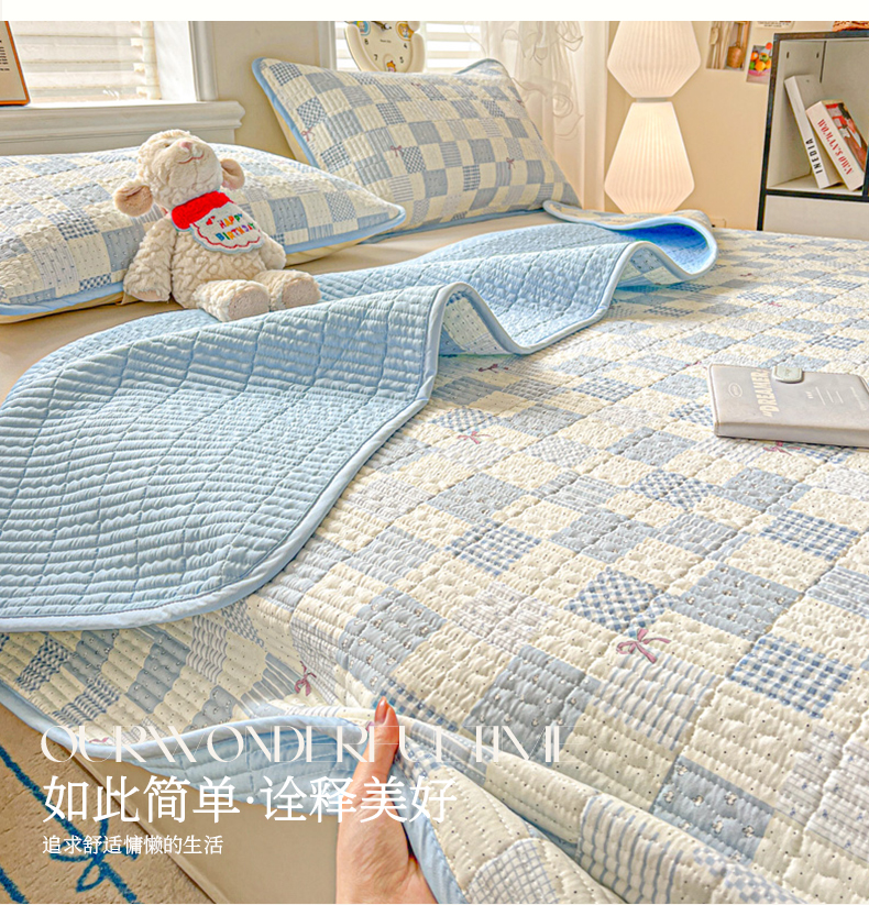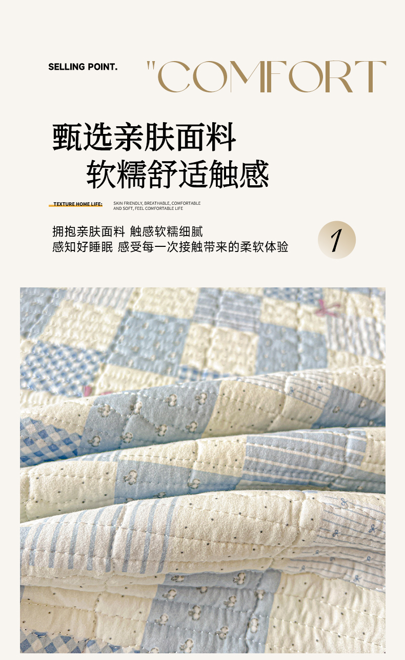 (总)岚吉家纺 2025新款全棉绗缝棉花床盖花边款三件套四件套,缤纷樱桃,草莓格子,花边兔,黄苏条,蓝美人,落落晨光,萌萌狮,蘑菇狗,秋日玫瑰,兔菲菲,向晚,小黑点点(米),游花间