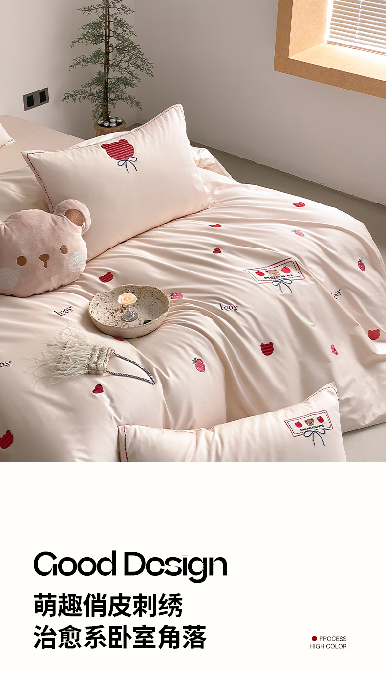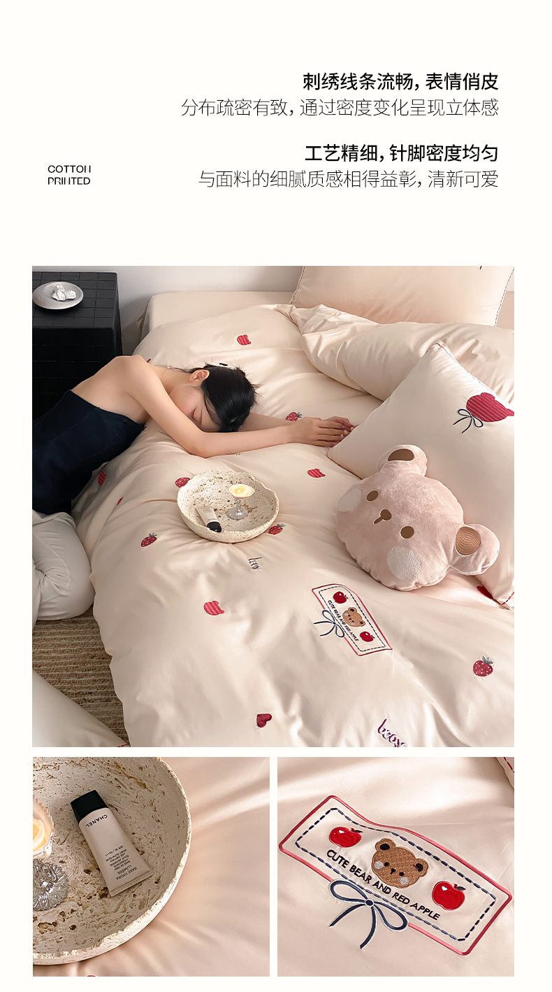 当前位置: 91家纺网 > 商品网购 > 床品套件 > 四件套 > 长绒棉四件套 > 极简 2026新款100s长绒棉刺绣四件套-甜莓小熊 甜莓小熊-浅咖