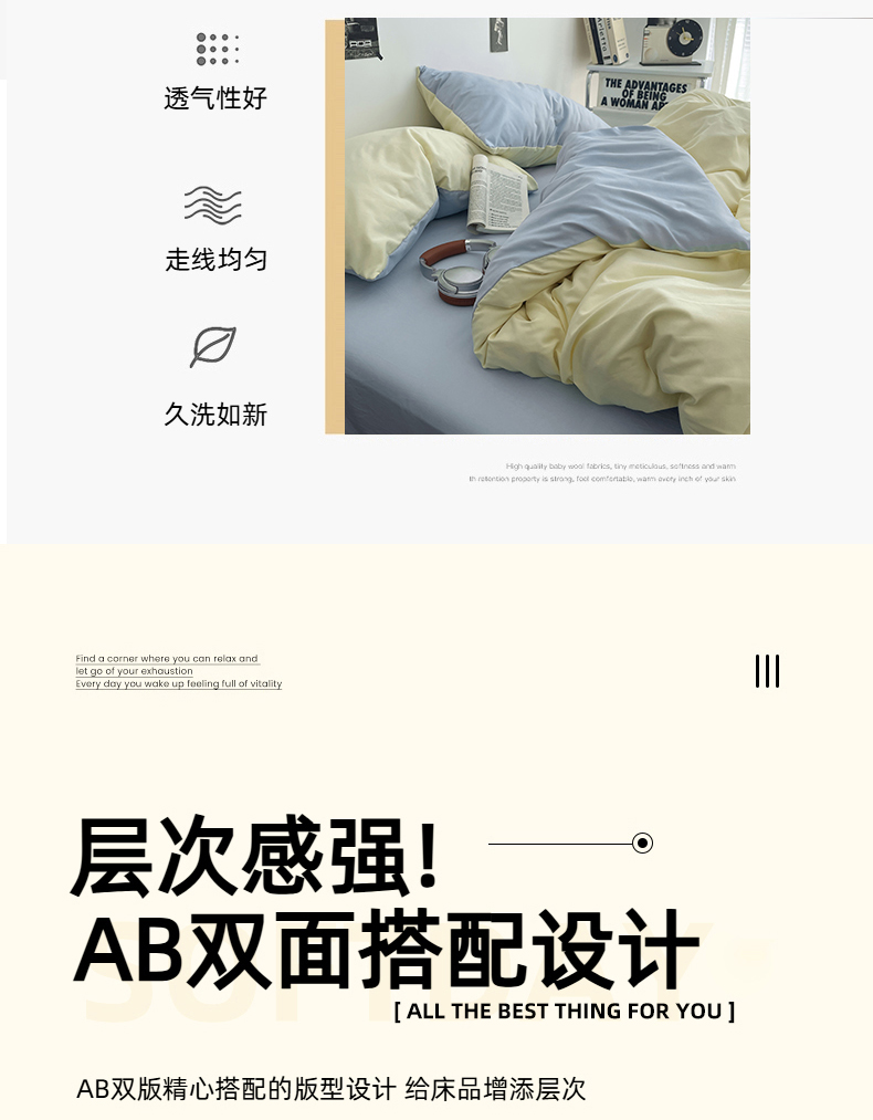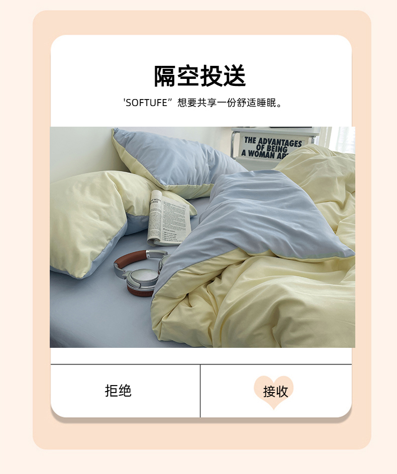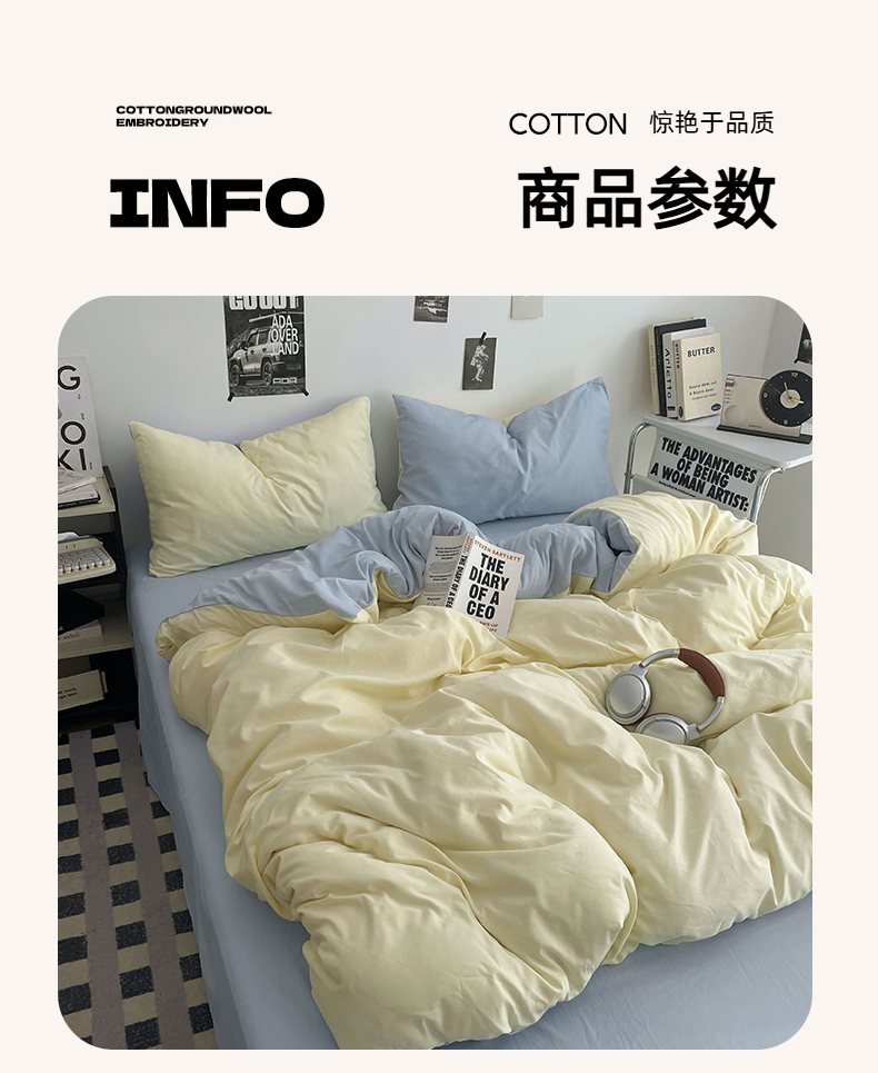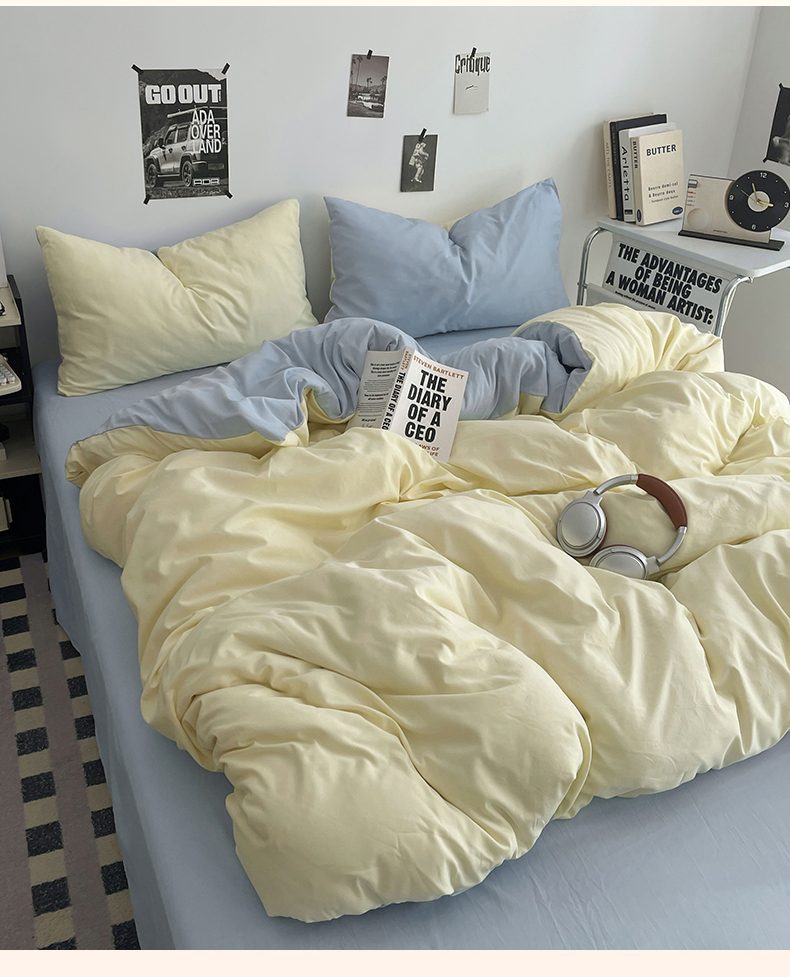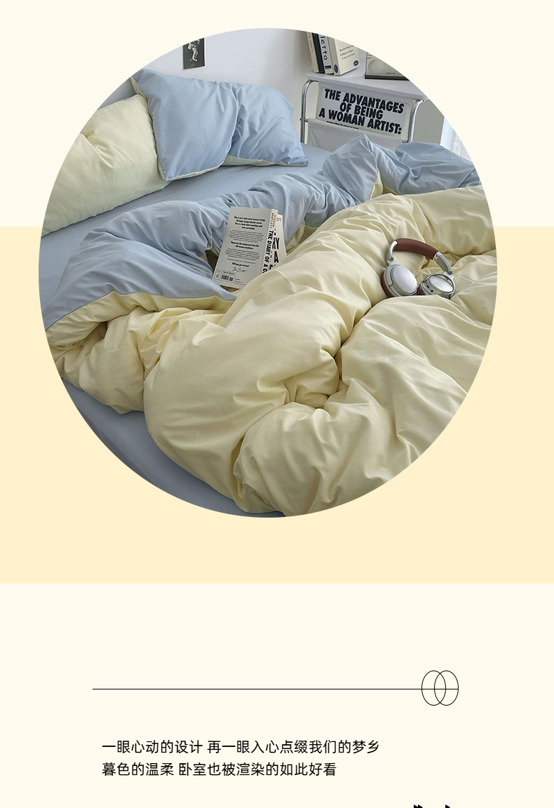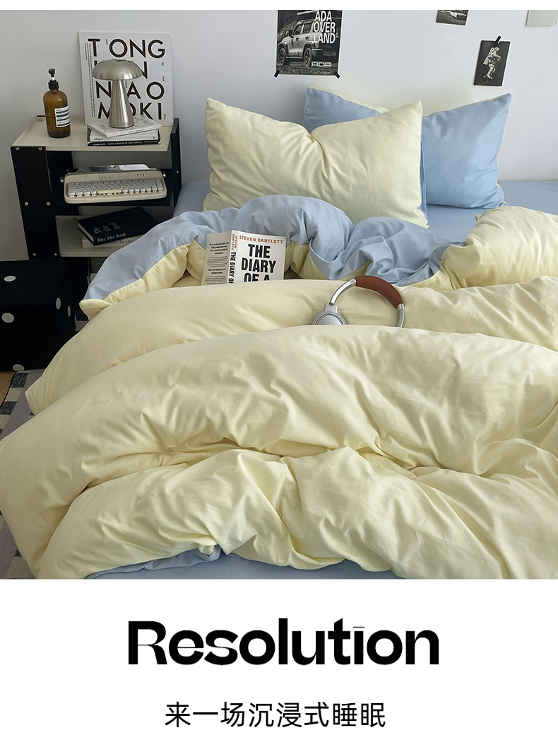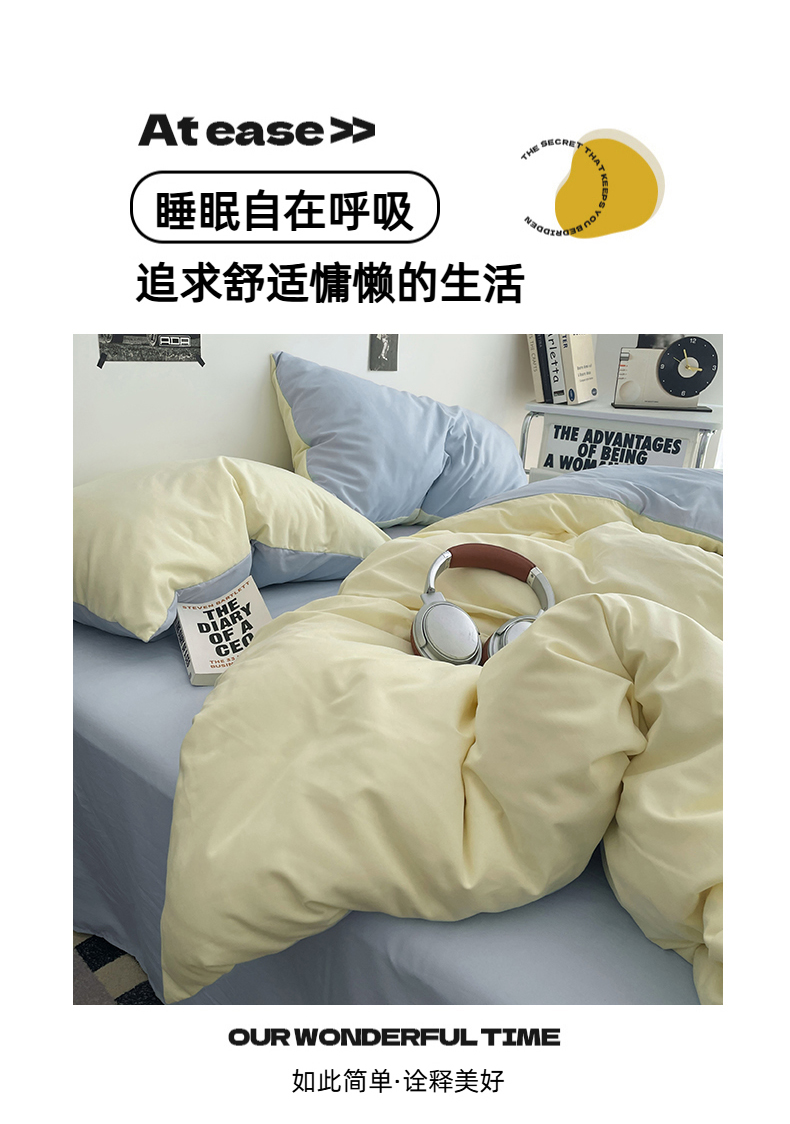 (总)贝拉梦家纺 2025新款纯色磨毛双拼亲肤棉四件套,暗黑骑士,半熟青柠,蓝色星河,奶油香草,乌梅子酱
