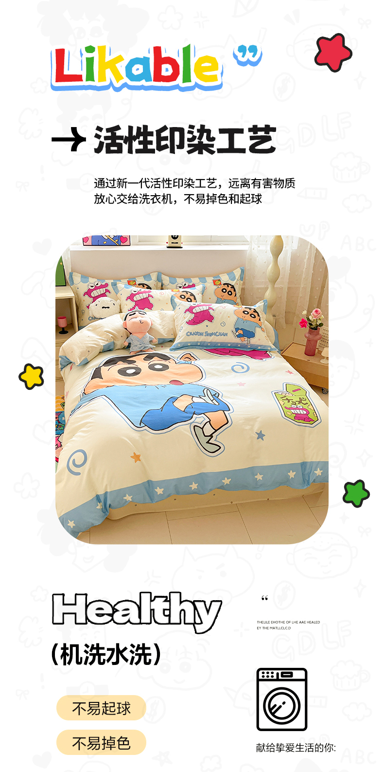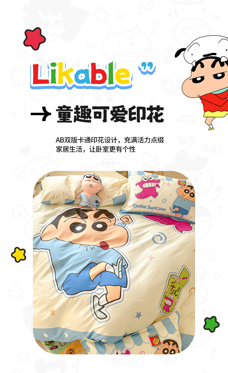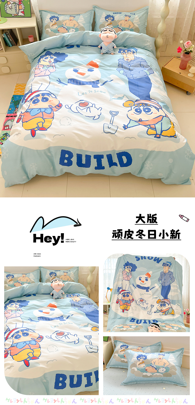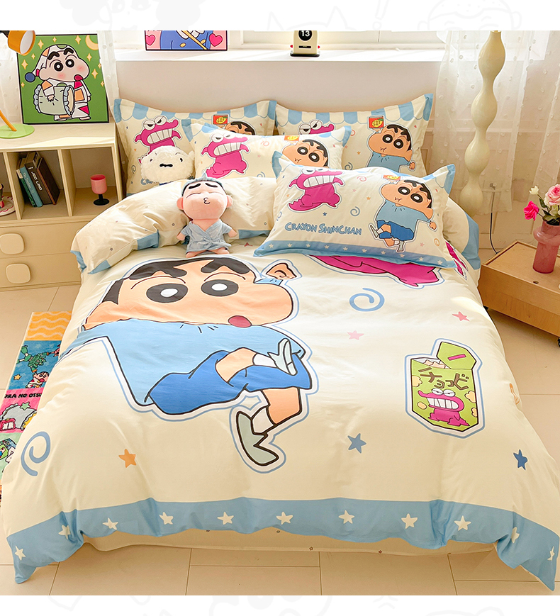当前位置: 91家纺网 > 商品网购 > 床品套件 > 四件套 > 全棉普通四件套 > 博雅 2026新款蜡笔小新正版授权全棉纯棉大版四件套 大版-滑板小新