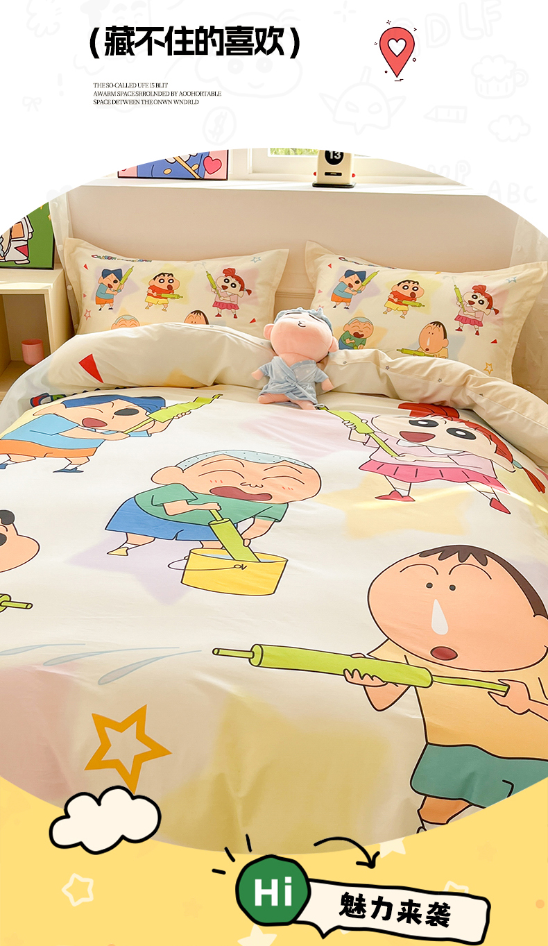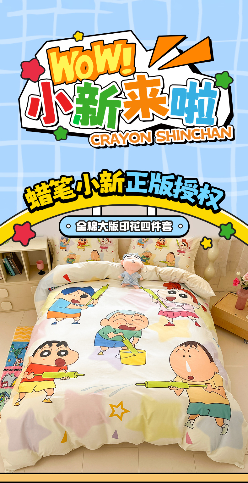 当前位置: 91家纺网 > 商品网购 > 床品套件 > 四件套 > 全棉普通四件套 > 博雅 2026新款蜡笔小新正版授权全棉纯棉大版四件套 大版-游玩蜡笔小新