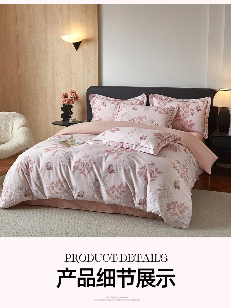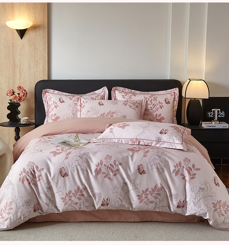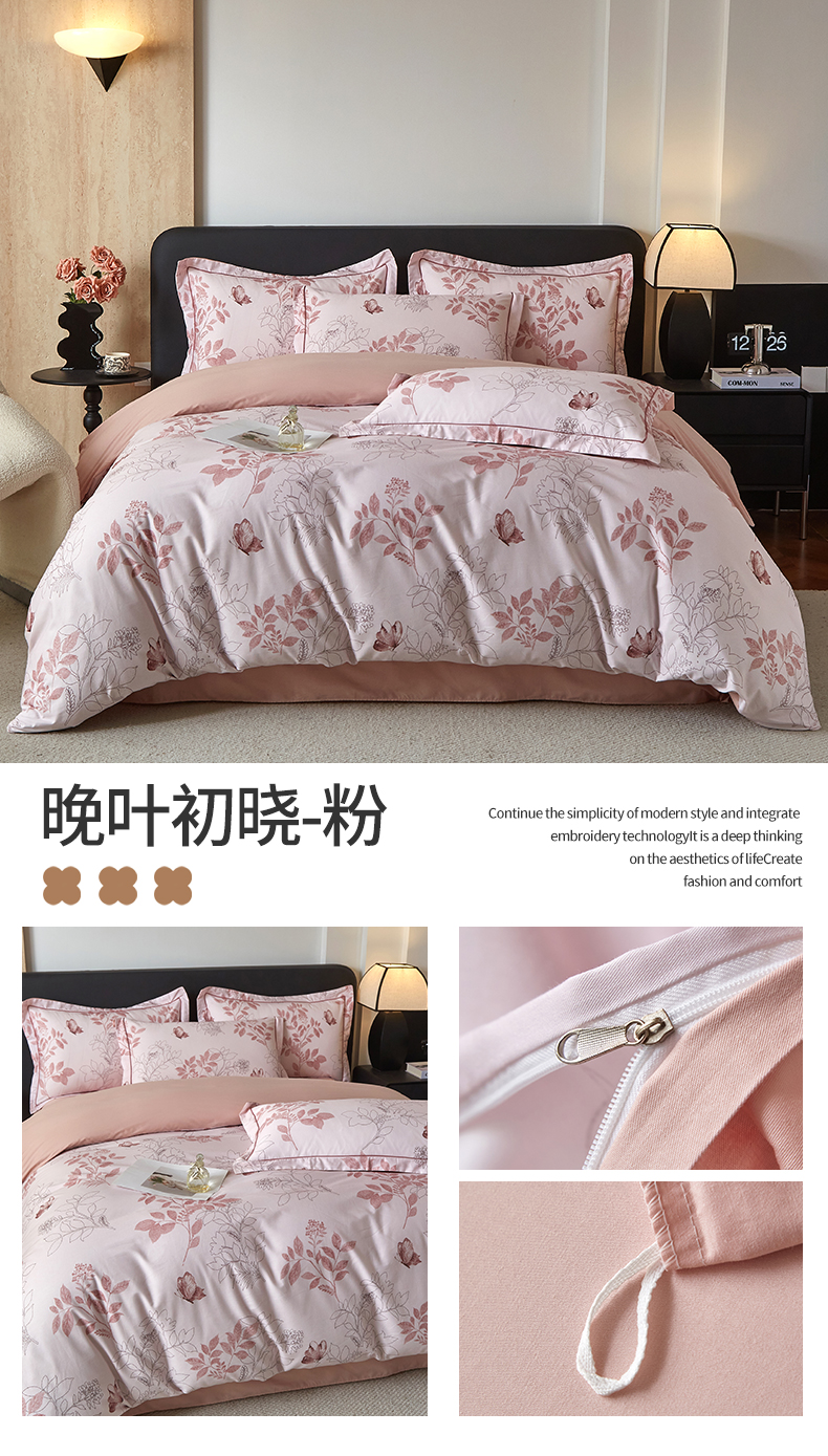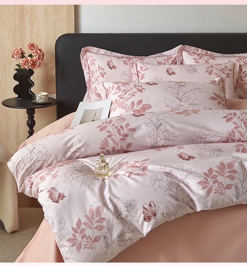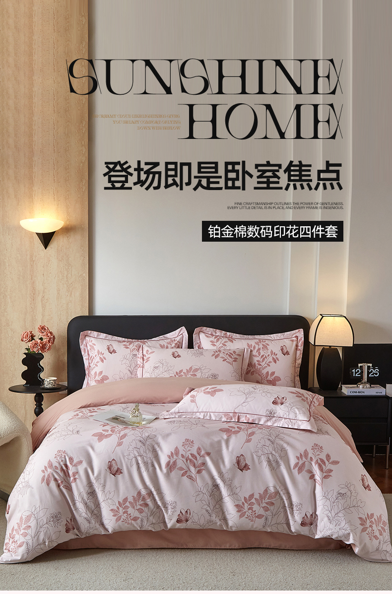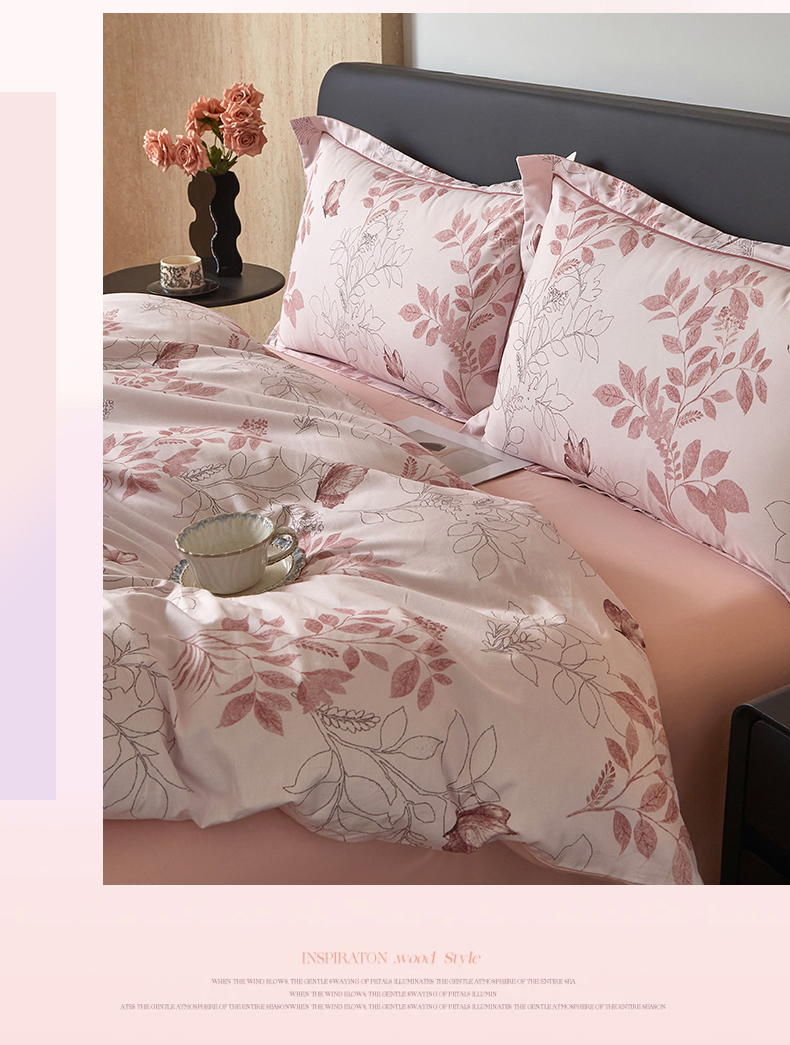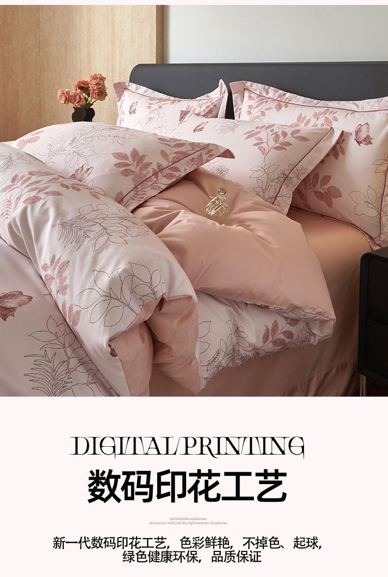 曼秀琳 2026新款铂金棉数码印花四件套(全棉133*76) 可提供买家秀图片 晚叶初晓-粉