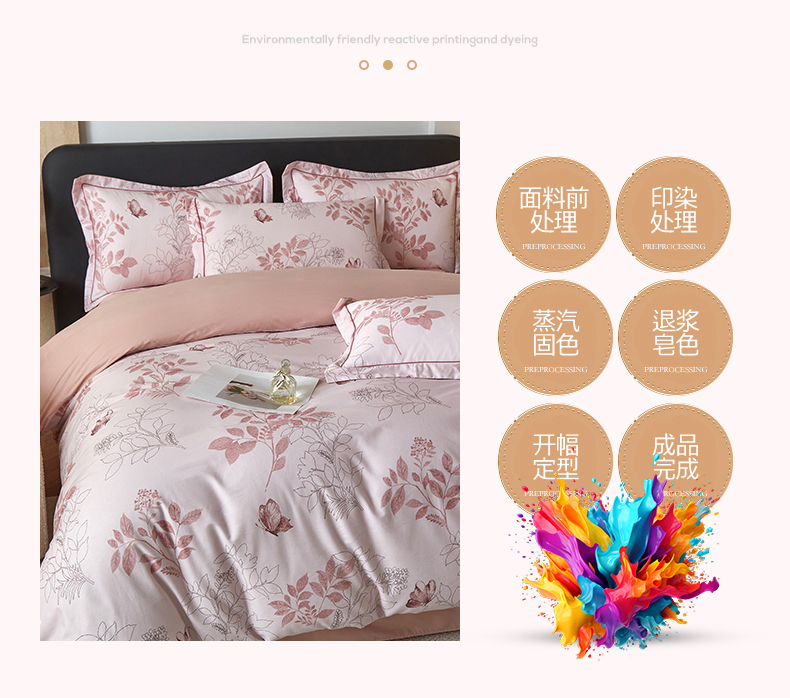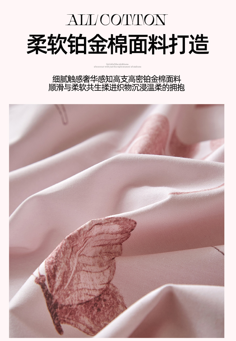 商品名称:曼秀琳 2026新款铂金棉数码印花四件套(全棉133*76) 可提供买家秀图片 晚叶初晓-粉