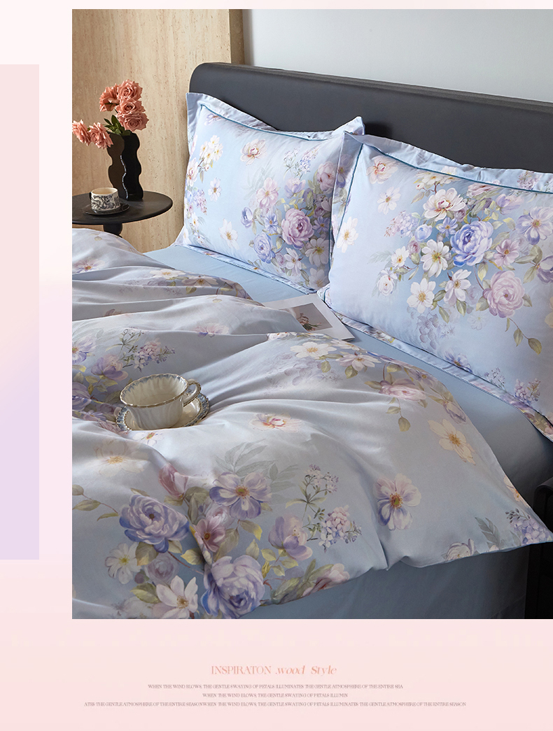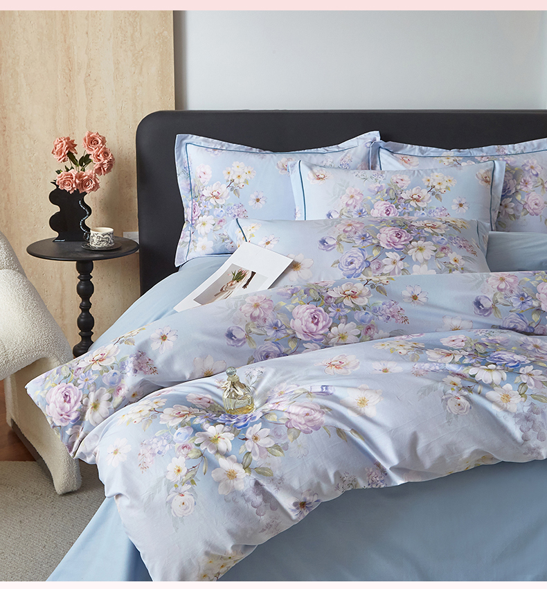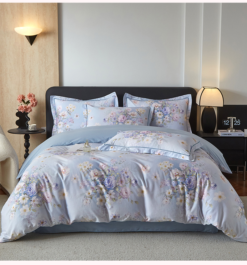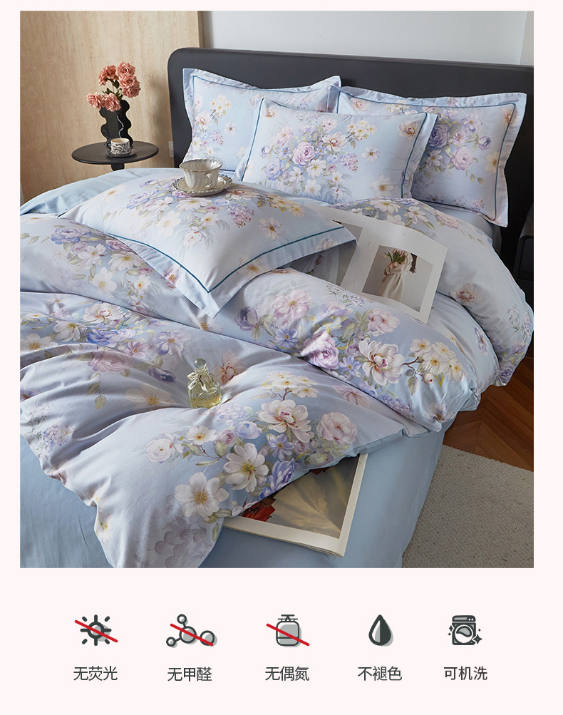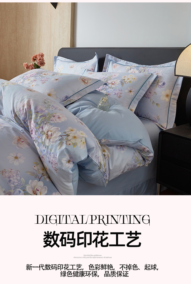 曼秀琳 2026新款铂金棉数码印花四件套(全棉133*76) 可提供买家秀图片 春色如许-兰