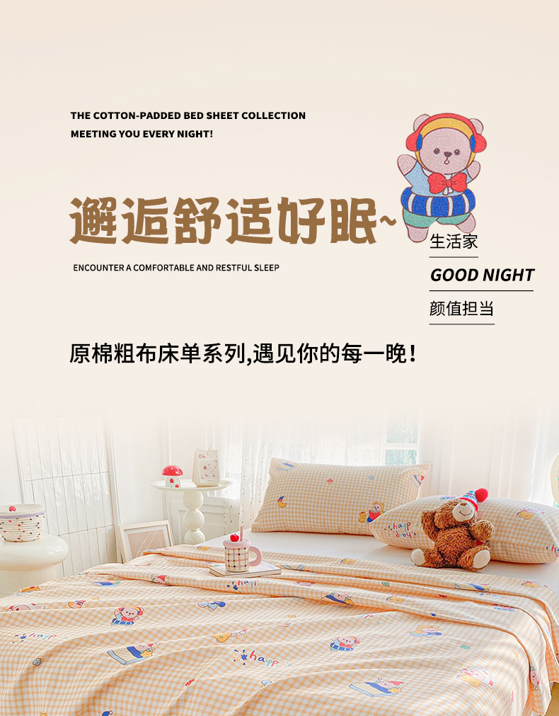 (总)首爱家纺 2026新款印花老粗布床单单品床单床单单件,读书熊,法蒂,芬芳,红帽格,墨晔,木槿,慕斯,南瓜,朋友,柒婳,晴栀,瑞香,条纹狗,玉兰,圆圈