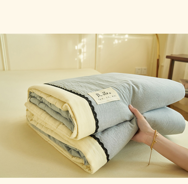 • 91家纺网 家纺一手货源 找家纺 恒爱家纺 2026新款全棉纯棉纯色双拼夏被四件套夏凉被空调被 绅士灰